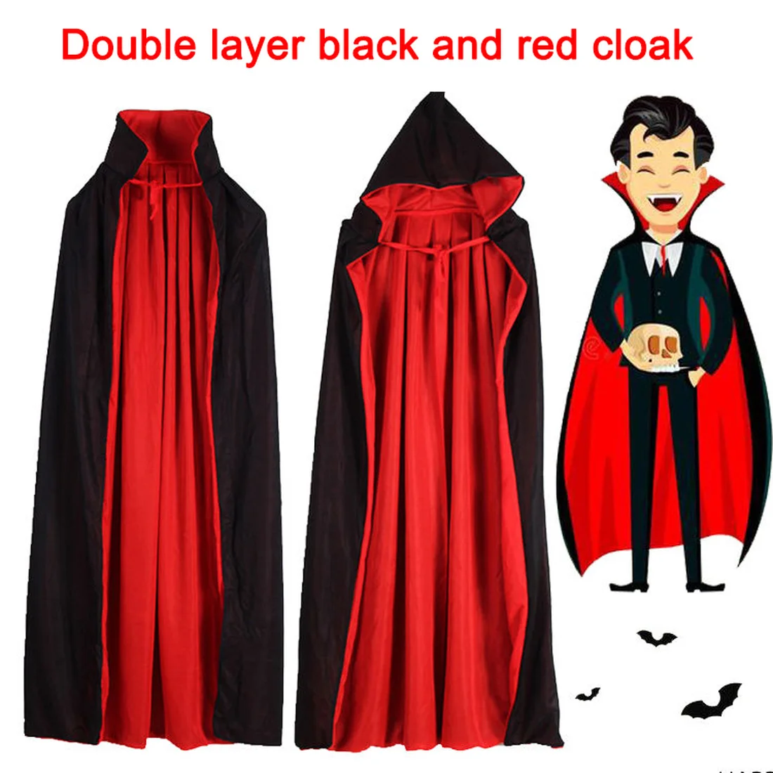 Накидка вампира, шапка с воротником-стойкой, двусторонняя для костюма на Хэллоуин, темативечерние, косплей для мужчин и женщин