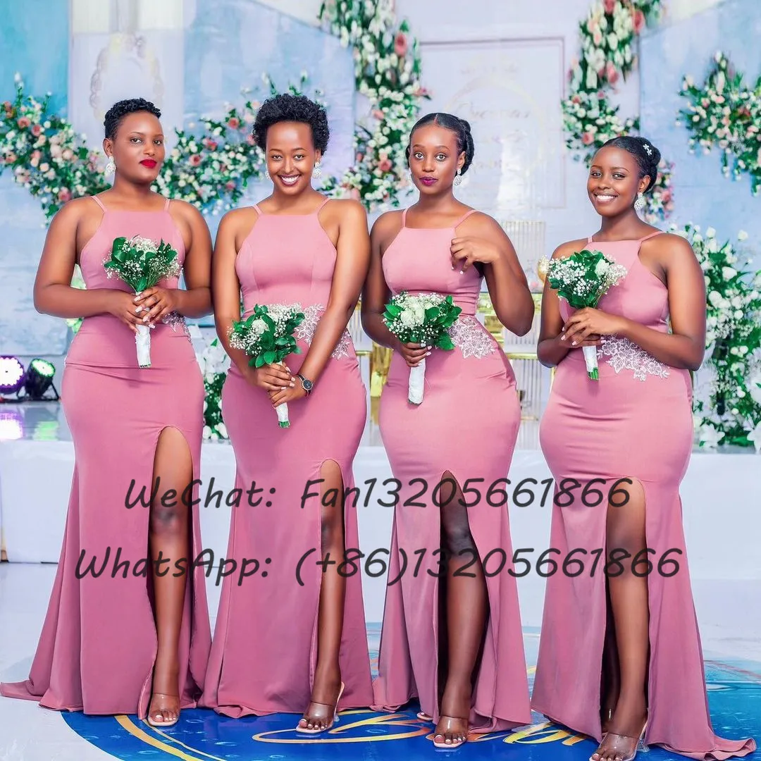 Женское длинное платье подружки невесты, пыльное розовое кружевное платье на тонких бретельках с аппликацией, платье для свадебной вечеринки с разрезом на ногах, платье для выпускного вечера, 2022