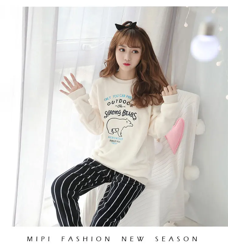Новый корейский осенне-зимний фланелевый Пижамный костюм с плюшевой...