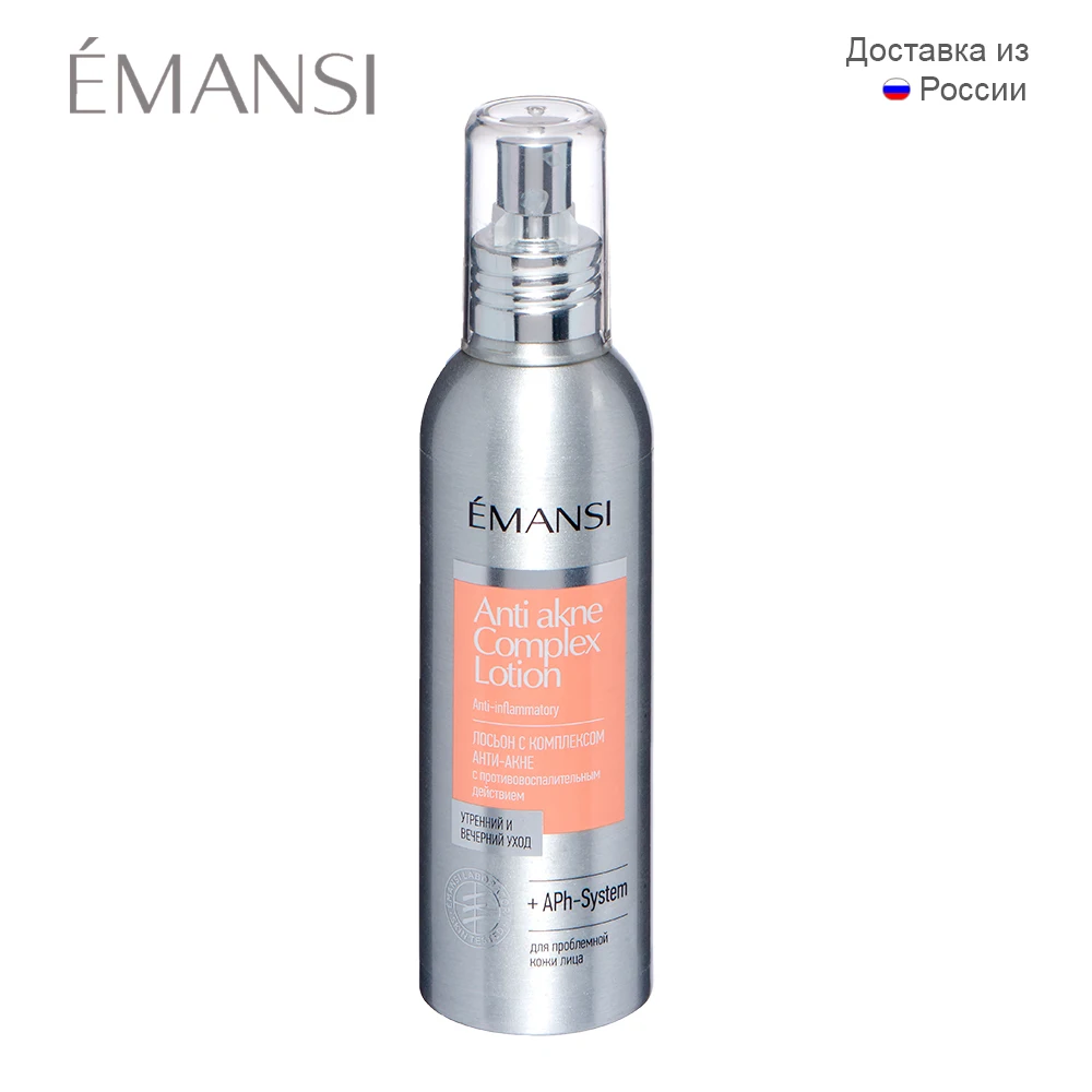 ЛосьонАнти-акне для проблемной кожи лица с противовоспалительным действием EMANSI +APh-System• Правильно очищает кожу без повреждения рогового слоя• Снижает образование себума• Задерживает развитие Propionibacterium acnes*, предотвращаетпоявлениепапул и камедонов, снижает воспаление кожи• Уменьшает размер пор, улучшает рельеф кожи с коэффициентом «2»
