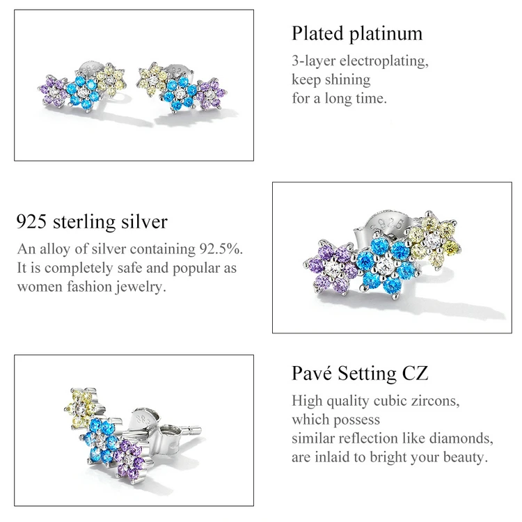 ❤[Описание] изысканные и яркие три маленьких цветка с цирконом. Носите их, элегантные и милые.❤[Спецификация] Размер: 0,6*1,2 см.❤[Материал] Стерлинговое Серебро 925 пробы и паве с фианитами и платиной, эти серьги не имеют никеля, не содержит свинца, не содержит кадмия, гипоаллергенны. Гарантия качества, приятный для кожи, удобный и удобный в носке, не вредный для вашего здоровья.❤[Для подарка] 1 пара сережек и 1 шт. Изысканная Подарочная коробка, которая является идеальным подарком для мамы, дочки, правки, тети, сестер, друзей.