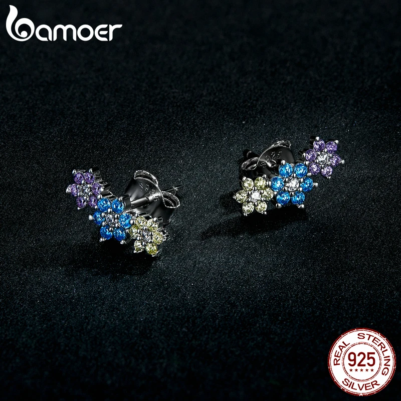 925 пробы серебряные серьги-гвоздики bamoer с эмалью, гипоаллергенн...