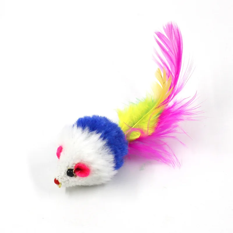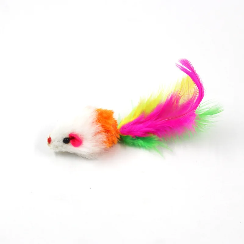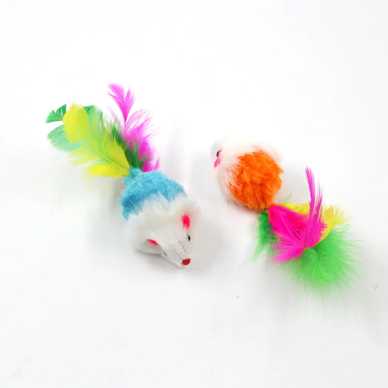 Случайные цвета Мягкая флисовая мини ложная мышь кошка игрушки Красочные перо забавные игральные игрушки в виде мышей для кошек котенок интерактивные шарики товары для кошек
