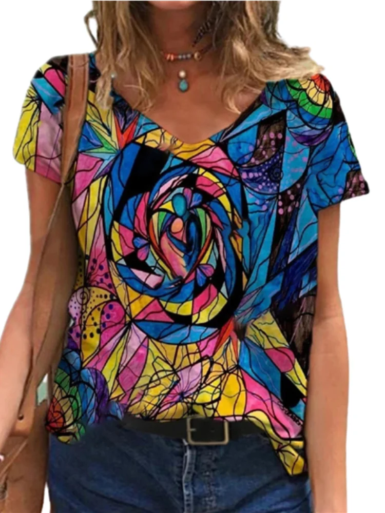 Модная женская футболка с V-образным вырезом и принтом, Повседневна...