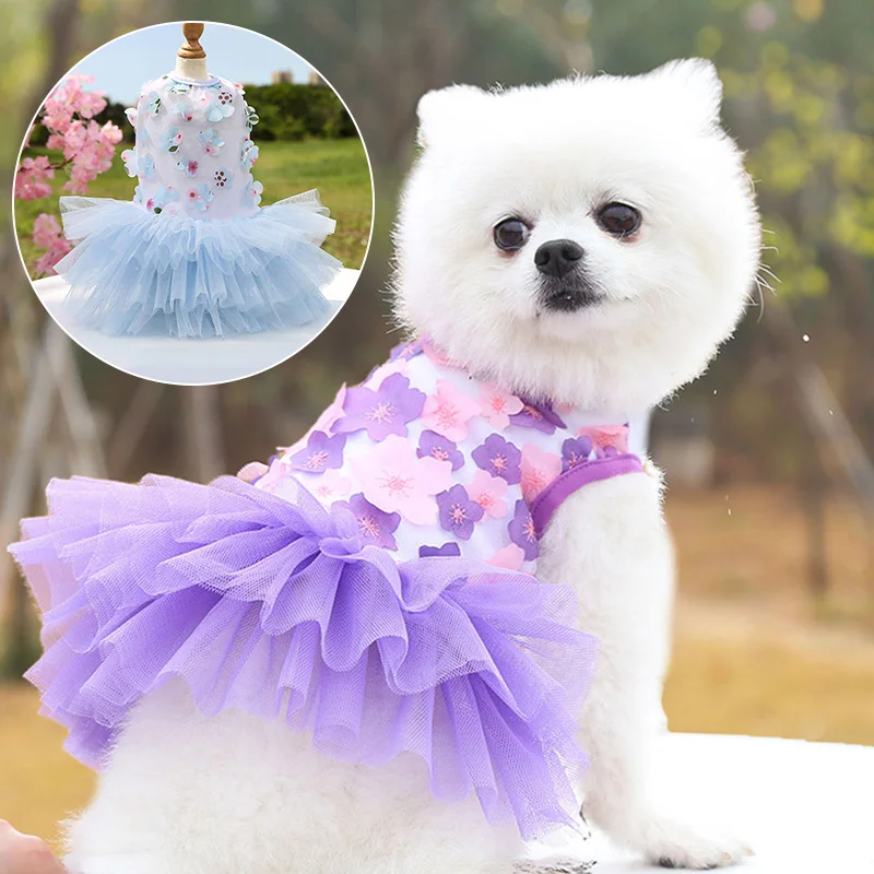 Летняя одежда для собак, кружевное платье принцессы с цветами для маленьких собак, красивая юбка для кошек, свадебное платье для чихуахуа, Йорка, собаки