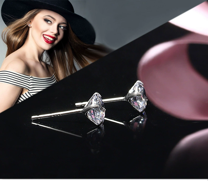 Женские серьги-гвоздики из 100% стерлингового серебра 925 пробы, модные серьги с кристаллами из настоящего серебра для девочек, новые классические серьги