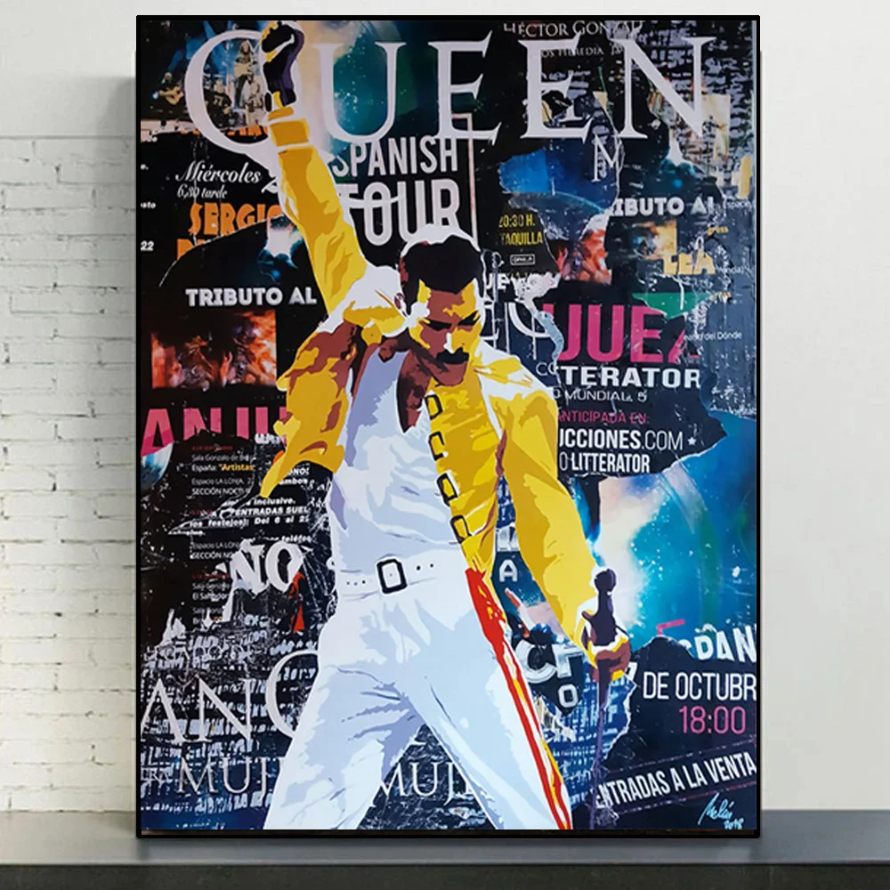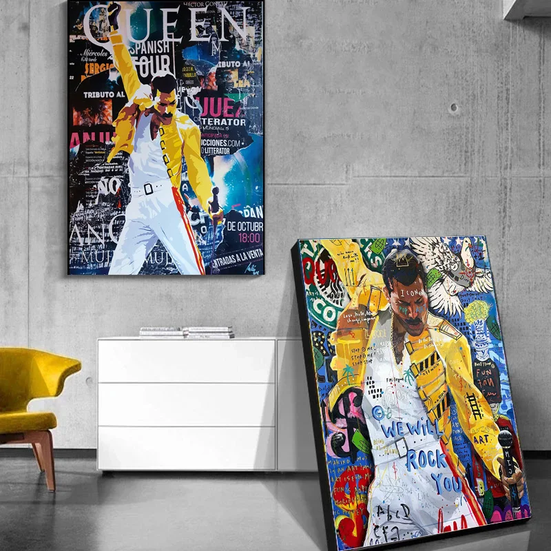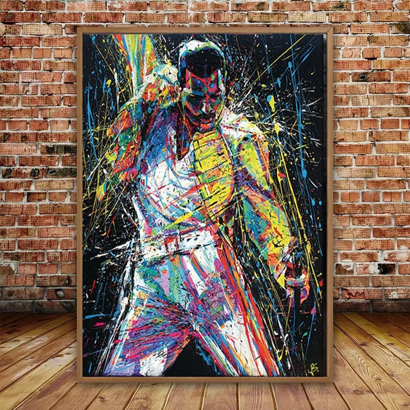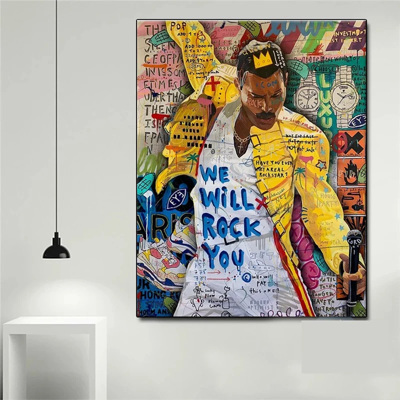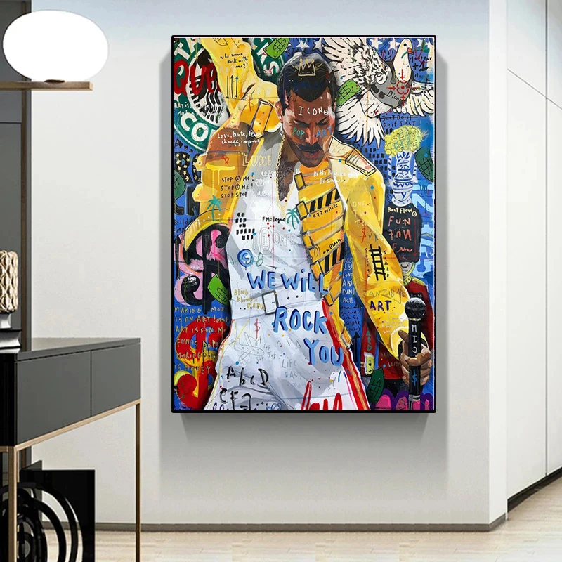 Граффити поп Холст Картина Настенная живопись Фредди Меркурий богемная рок музыка звезда плакаты принты уличное искусство картина украшение дома