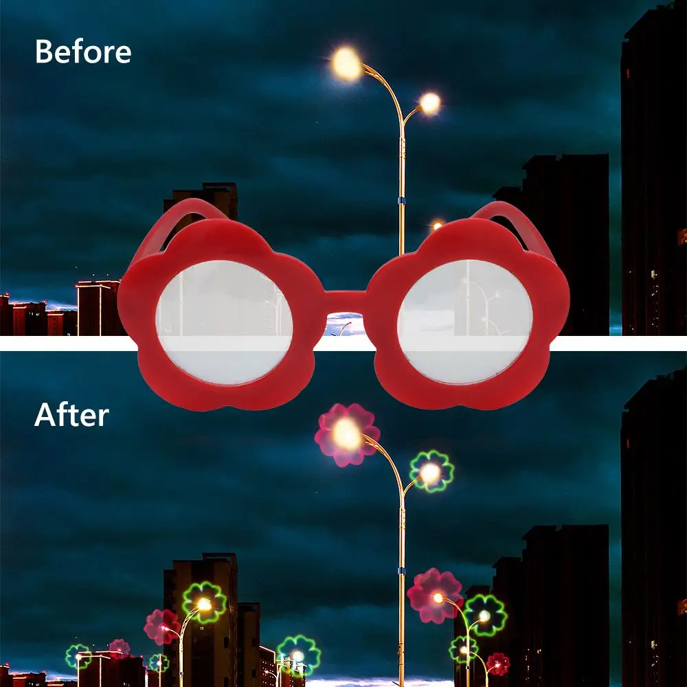 Забавные солнцезащитные очки с дифракцией эффекты фейерверка очки для просмотра света меняются на форму цветка дифракционные очки для новечерние