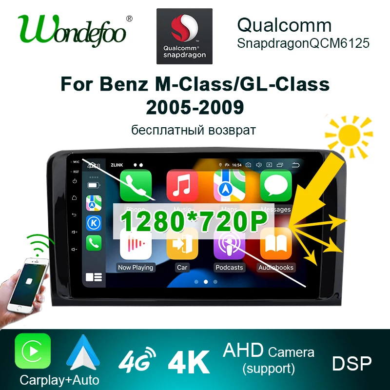 Автомобильная магнитола Qualcomm Snapdragon 2din Android 10 с экраном для Mercedes Benz ML W164 GL X164 ML350 ML300 ML320 ML280 GL350 GL500 интеллектуальная система видео проигрыватель навигатор