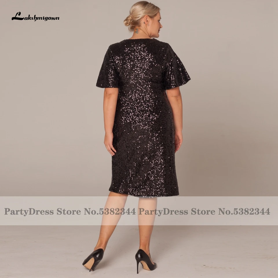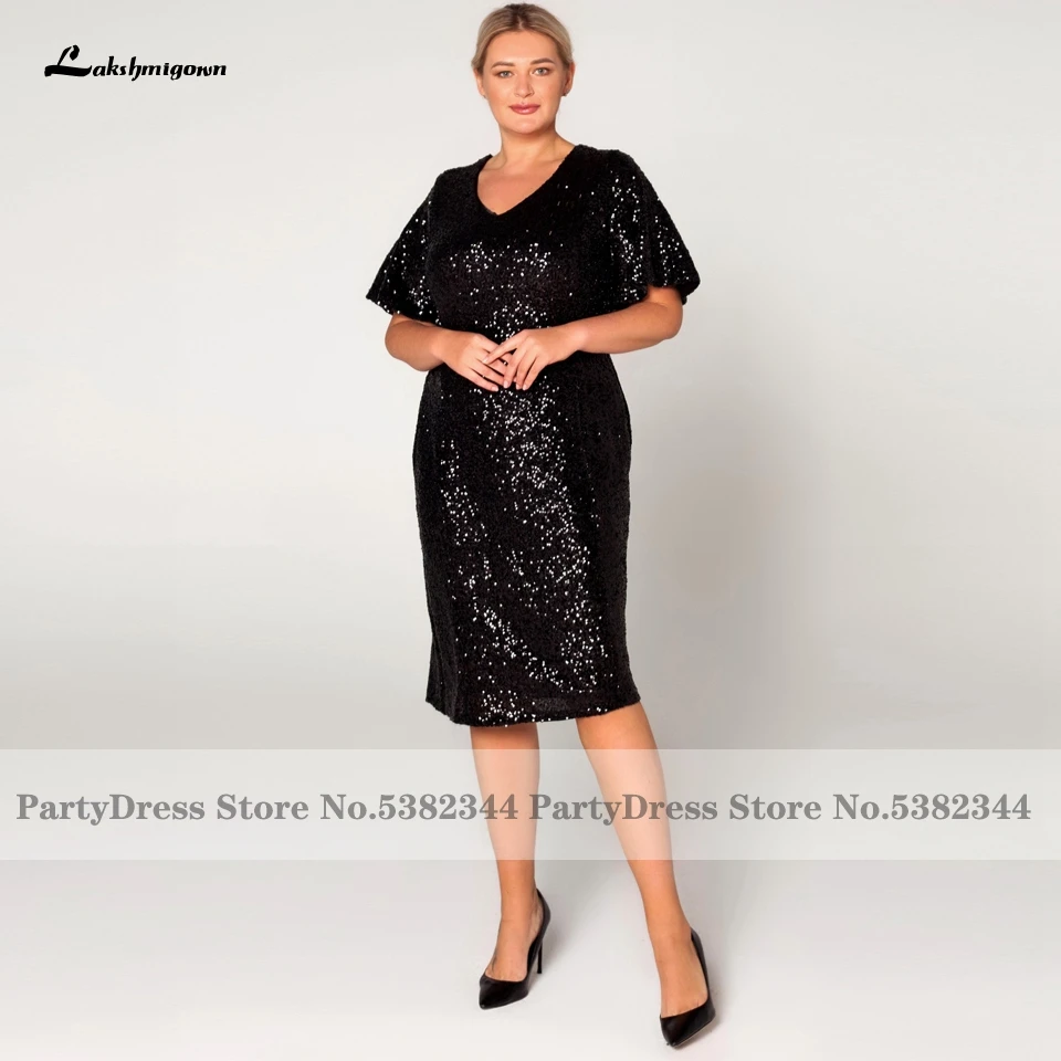 Блестящее черное платье Lakshmigown для матери невесты, модель 2022 года, платье-футляр, свадебное вечернее платье с коротким рукавом