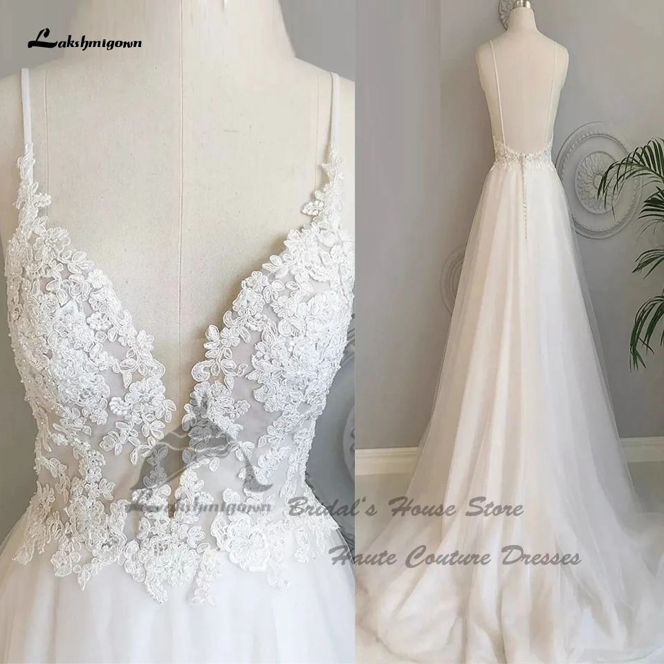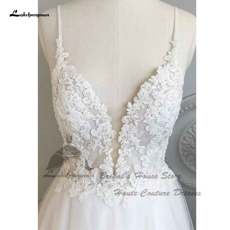 Пляжное свадебное платье принцессы es для невесты на бретелях-спагетти 2022 Robe Mariee шикарное кружевное платье с аппликацией и V-образным вырезом в стиле бохо свадебное платье с открытой спиной