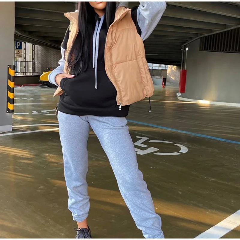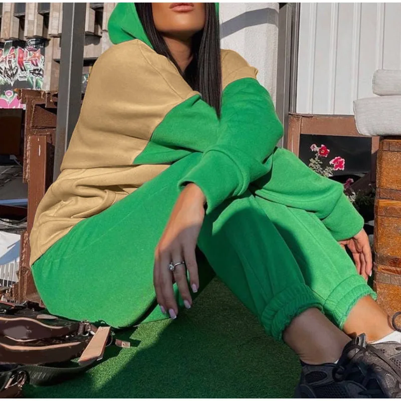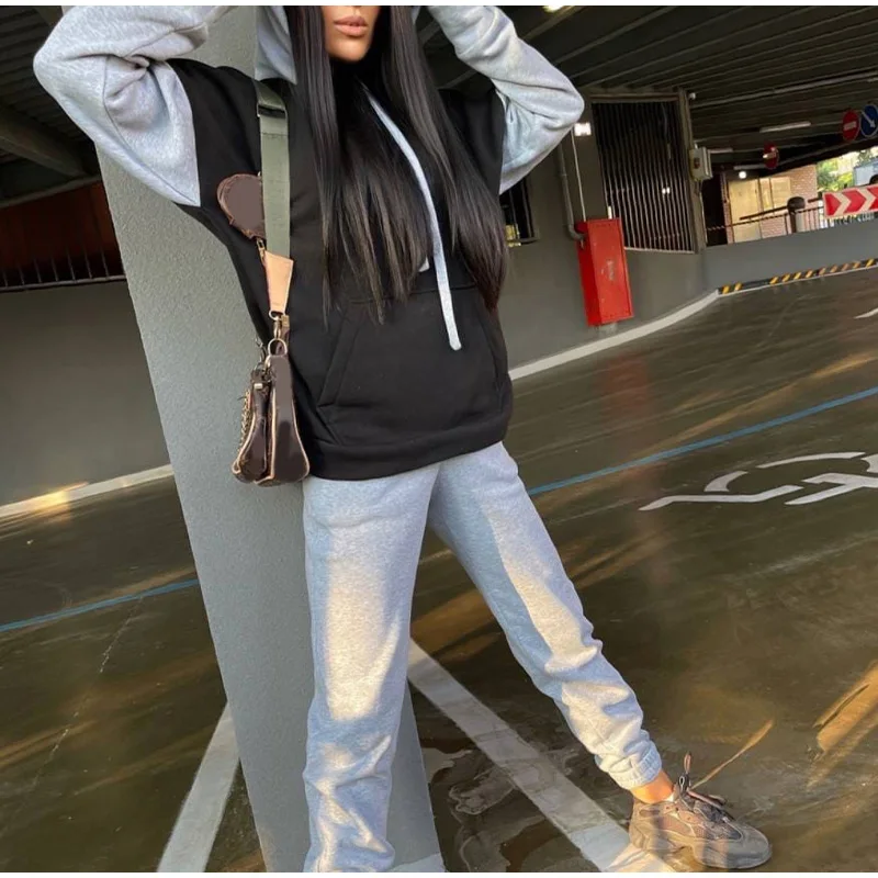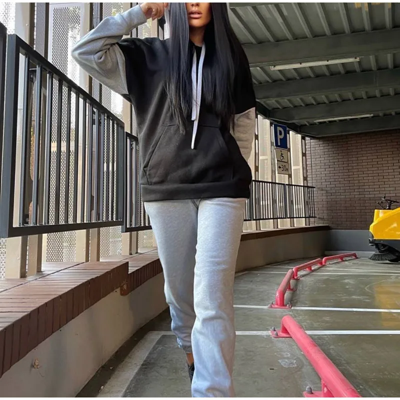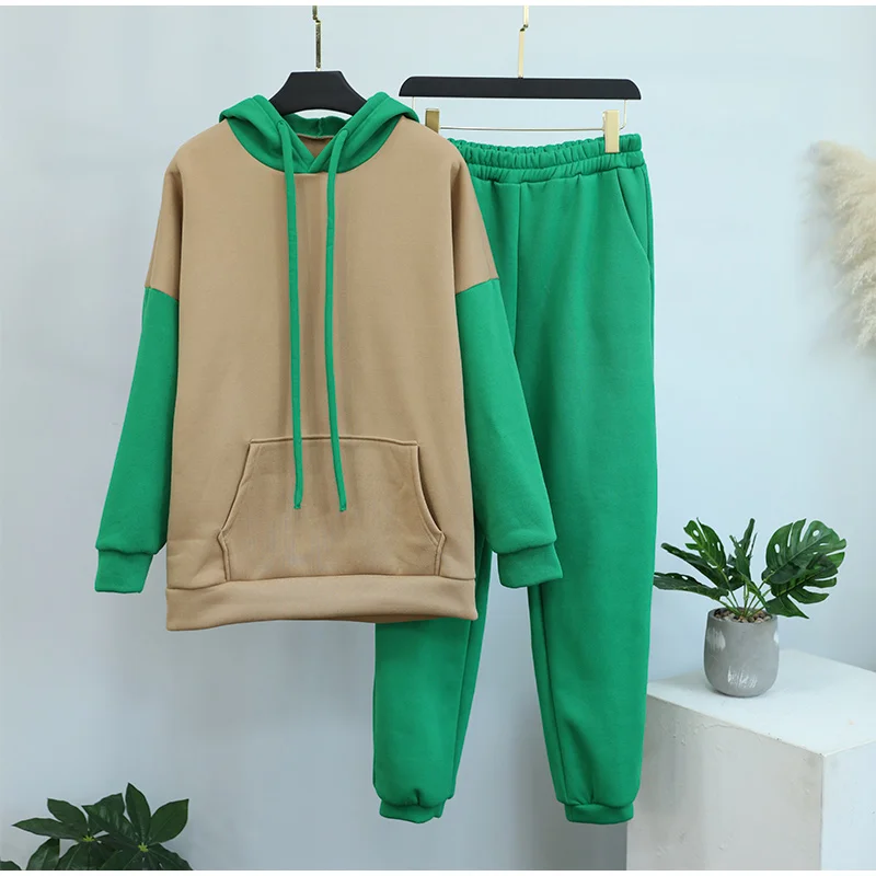 Style 22021 Winter New Warm Color Matching Loose Sweatshirt Sets
