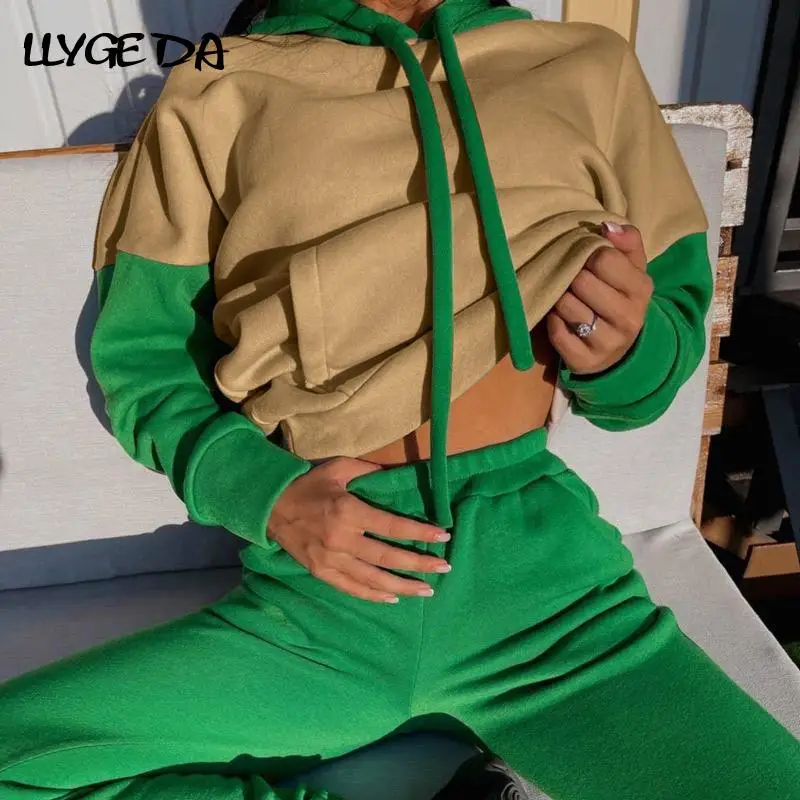 Женский костюм с толстовкой с капюшоном, флисовый лоскутный пуловер...