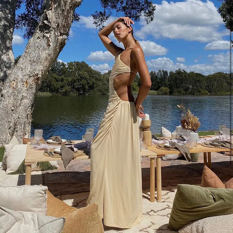 BOOFEENAA длинное платье на одно плечо с открытой спиной сексуальные элегантные наряды для отпуска для женщин 2022 летние женские платья