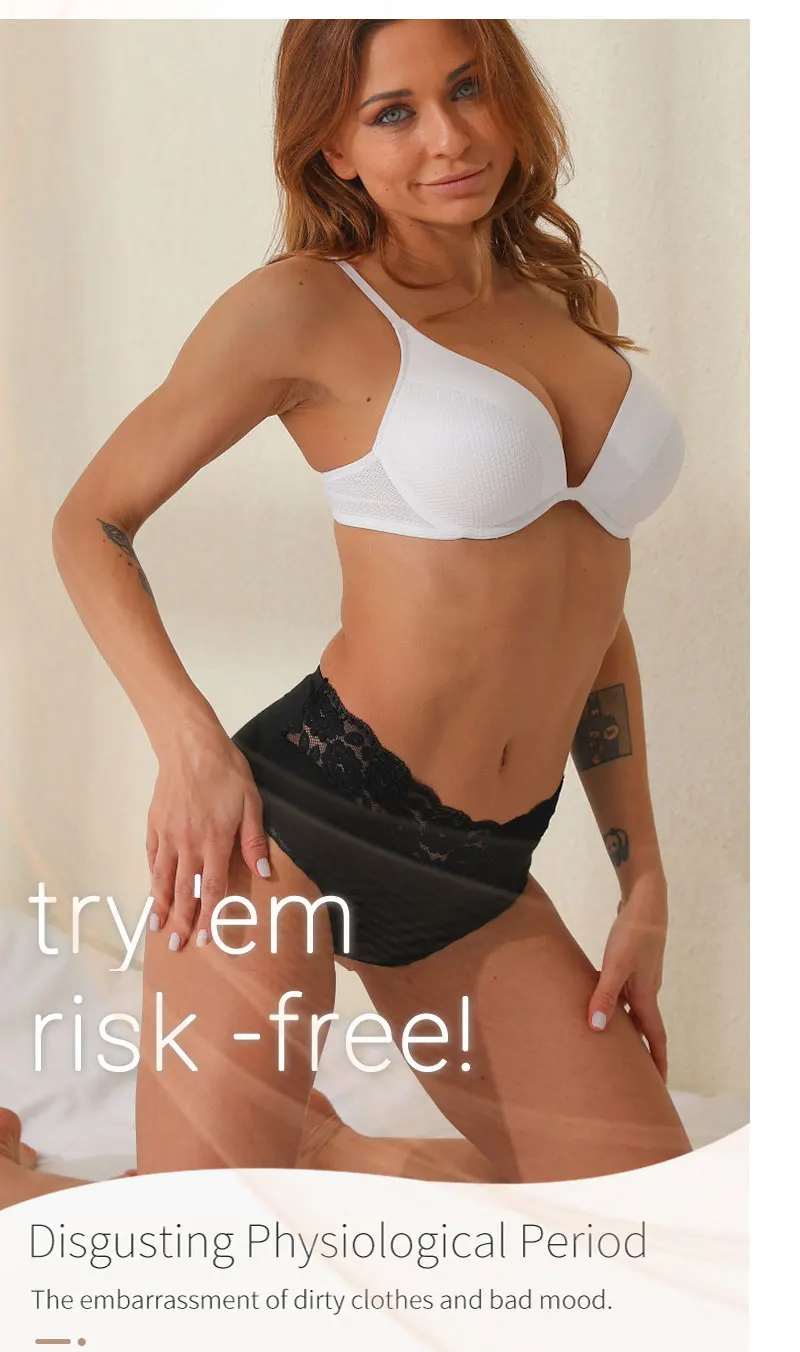 Непротекаемые трусики для менструации, 4-слойное быстровпитывающее нижнее белье, сексуальные кружевные женские трусы для менструации, женское нижнее белье, 5XL, 6XL