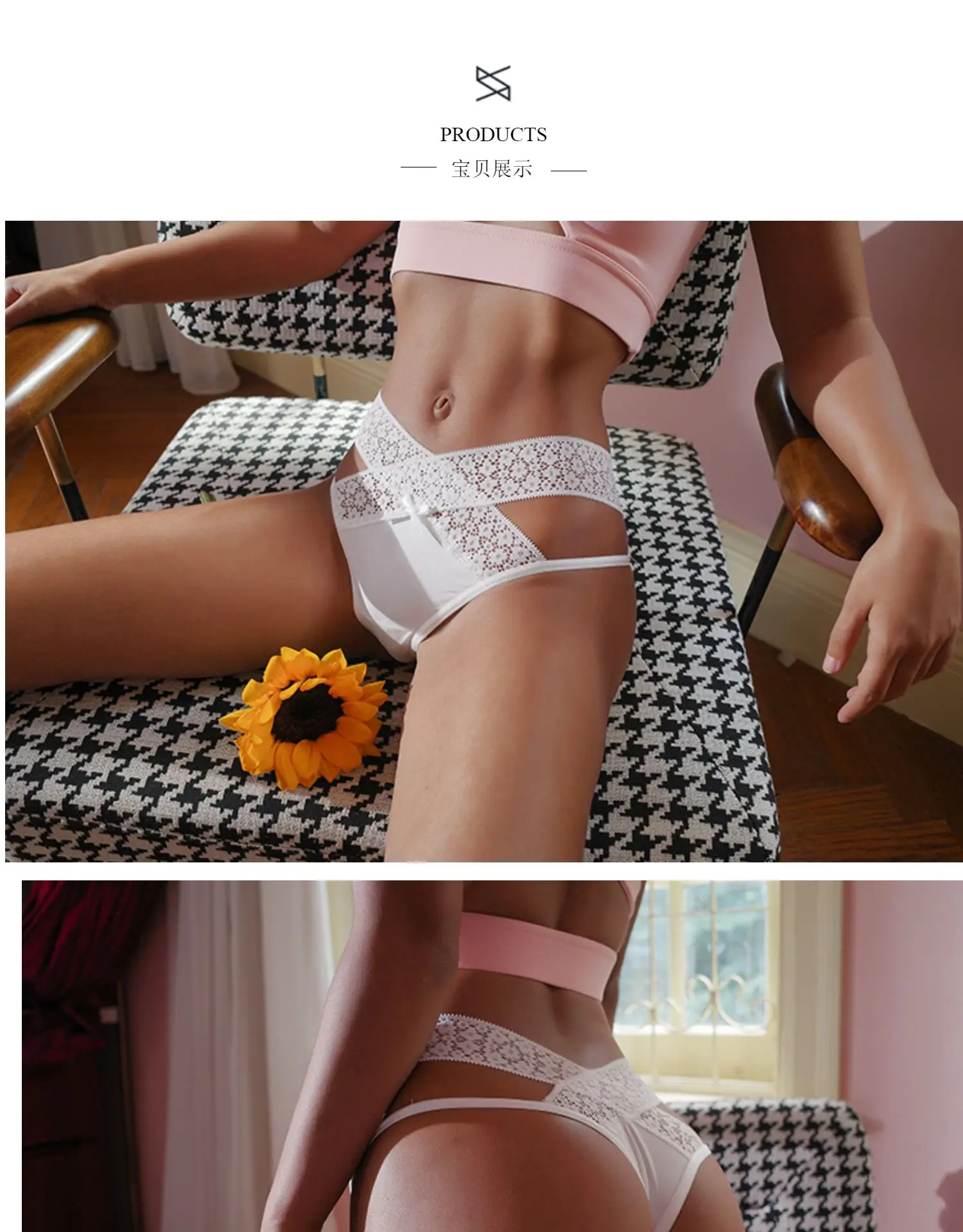 Женское удобное сексуальное кружевное нижнее белье, женские прозрачные трусики с вырезами, хлопковые бесшовные трусики-стринги с заниженной талией