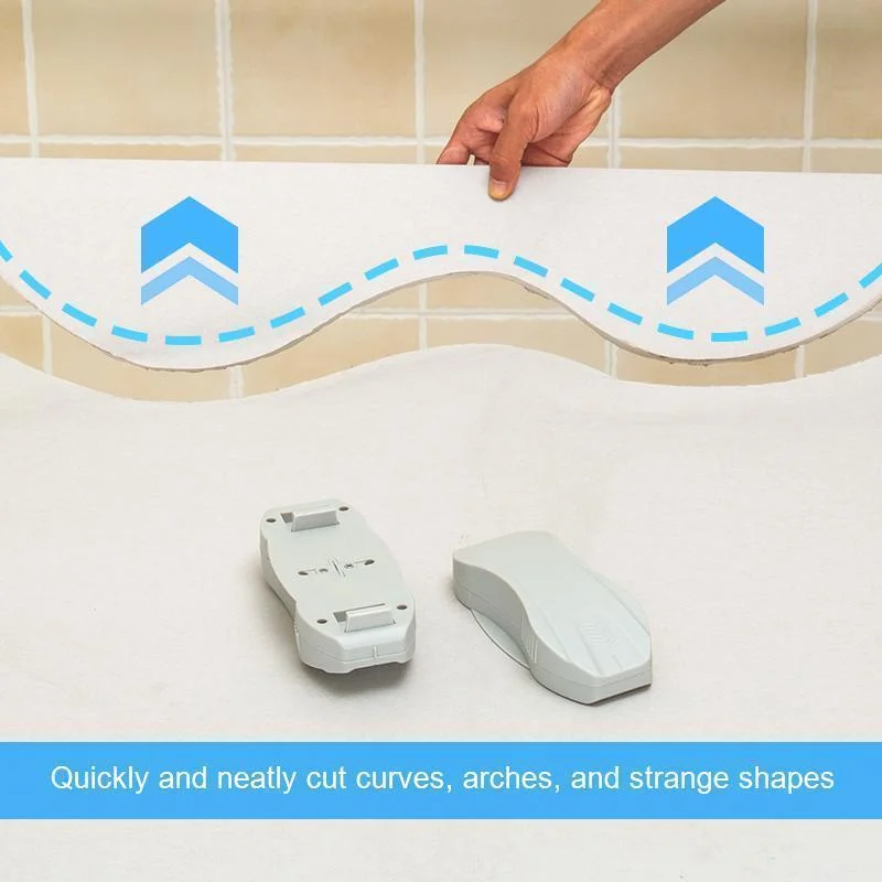 Редкоземельные магниты тянут половинки друг к другу, в то время как навесные пластиковые вкладки держат две половинки друг от друга-просто достаточно места, чтобы сдвинуть инструмент на лист гипсокартона. Две магнитные половинки одновременно оборачивают обе стороны гипсокартона, режут кривые арки, а нечетные формы быстро и аккуратно.