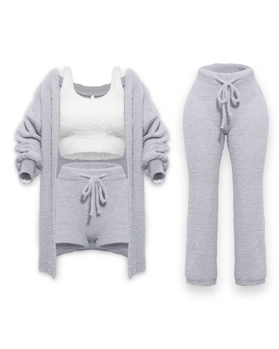 Осенне-зимняя меховая одежда из 4 предметов, сексуальные укороченные топы с открытой спиной, женское белье, комплекты домашней одежды для отдыха, спортивный костюм, флисовая Пижама