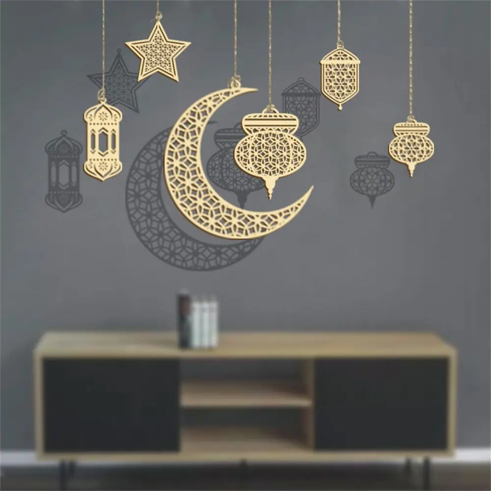 Деревянный подвесной кулон Eid Mubarak, украшение Рамадан, подарок Kareem, мусульманский домашний стол, товары для вечерние