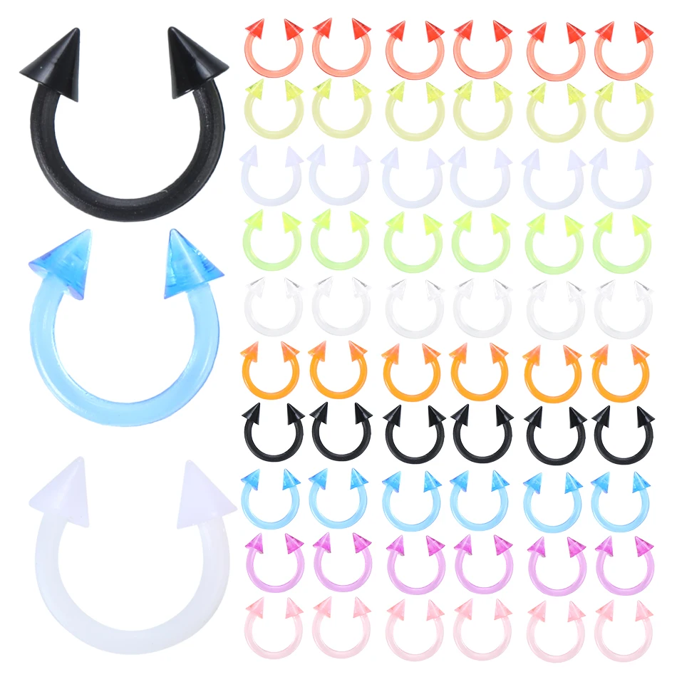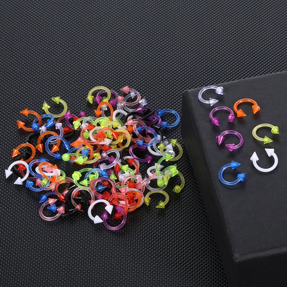 100 шт.лот 16 г Подкова Пирсинг шип Циркулярный для перегородки акриловые разноцветные носоупоры носа перегородки бровей Tragus серьги-гвоздики