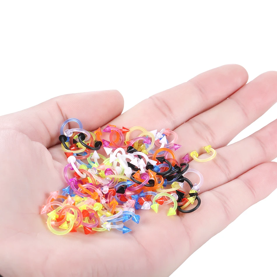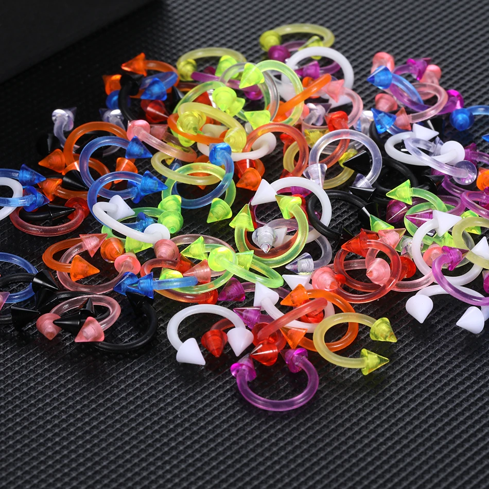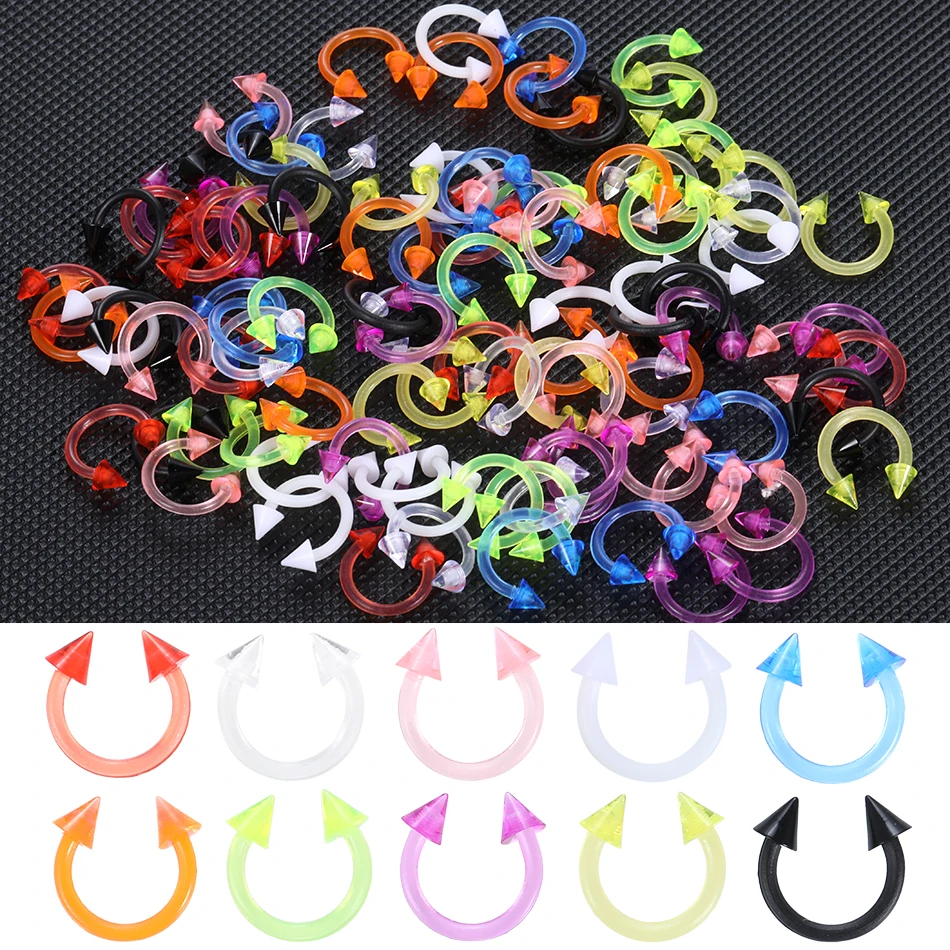 100 шт. 16 г конусные шипы в форме подковы, круглые акриловые разноцветные перегородки для носа, кольцо для носа, перегородка для бровей, спираль, пирсинг для ушей, ювелирные изделия для тела