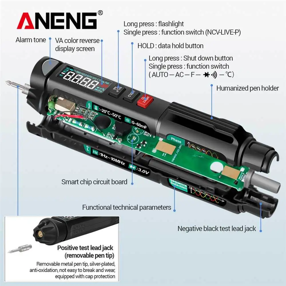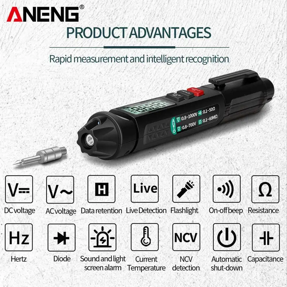 1. 6000 штук-это карманное 3 5/6 цифр истинное эффективное значение, умный мультиметр в форме ручки, не нужно поворачивать циферблат, чтобы выбрать функцию.