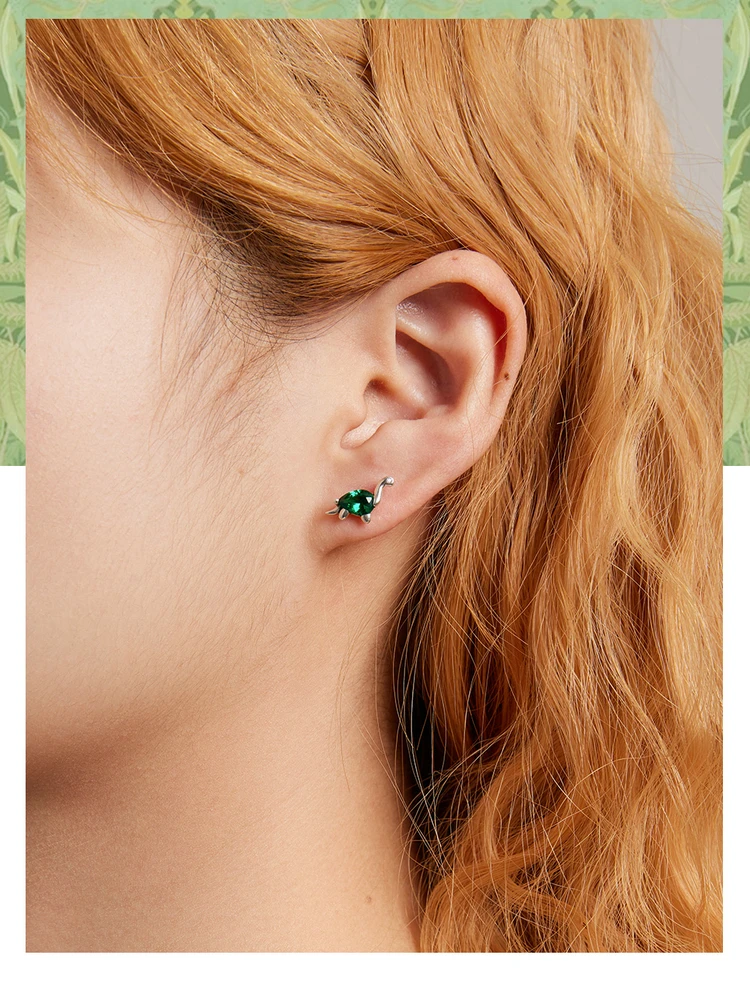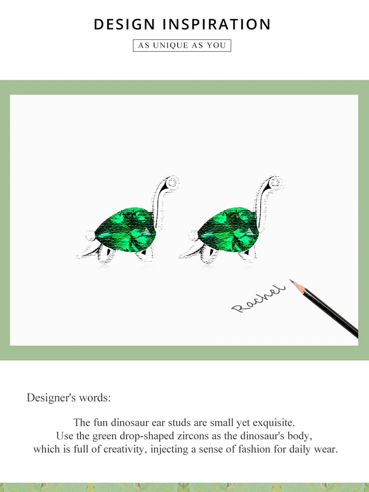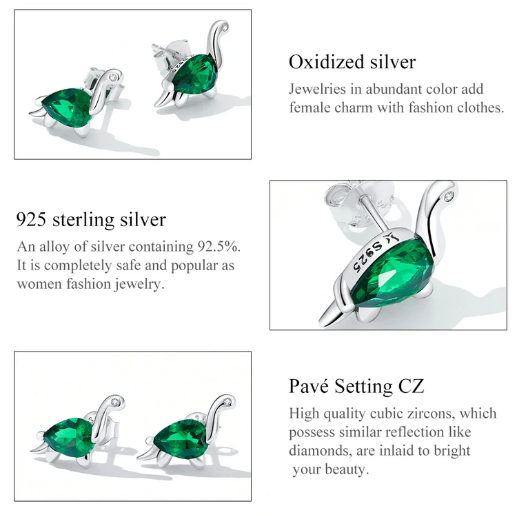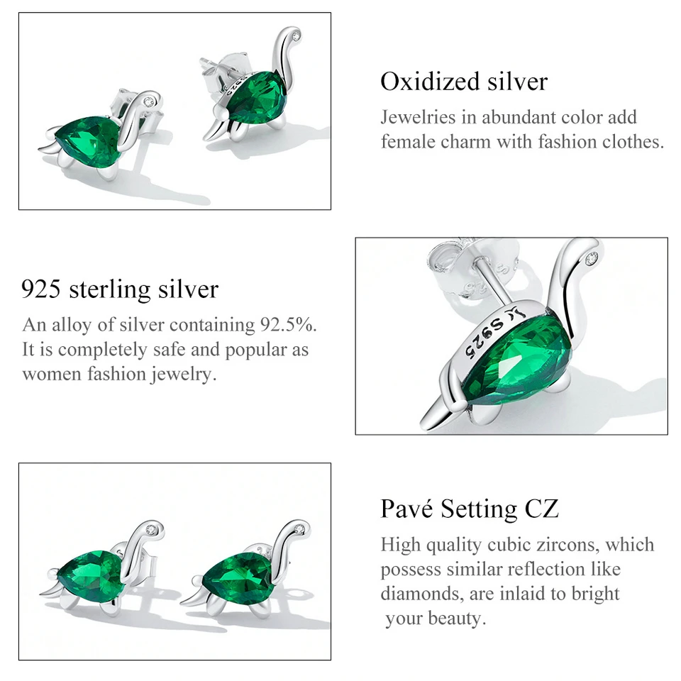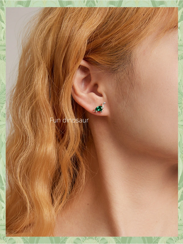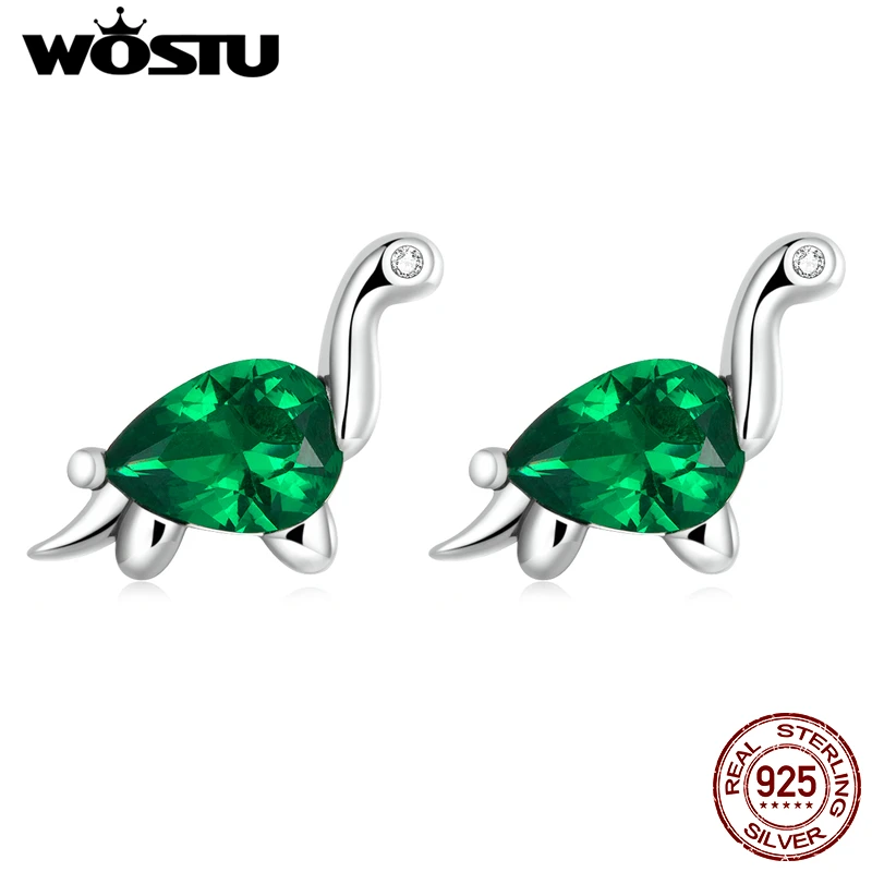 Женские серьги-гвоздики WOSTU из стерлингового серебра 925 пробы с зеленым цирконием в форме динозавра, вечерние ювелирные изделия FIE1379