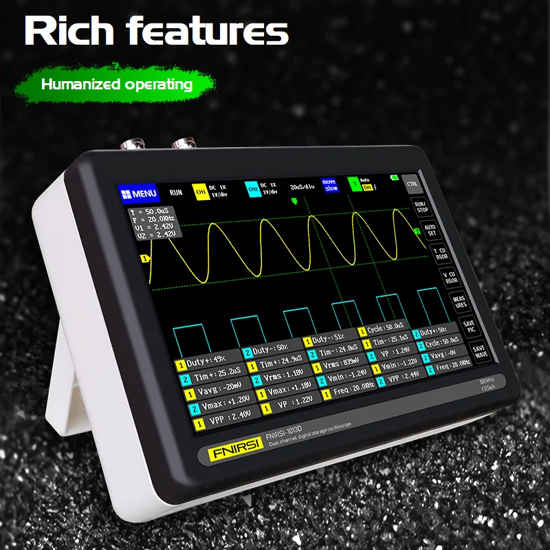 FNIRSI 1013D цифровой плоский панельный осциллограф двухканальный 100m 2CH полоса пропускания 1GS частота дискретизации Небольшая плоская панель