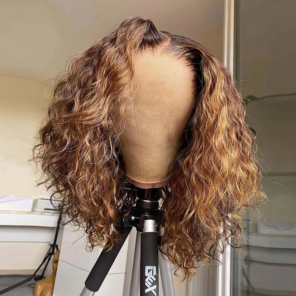 Выделите глубокий волнистый HD парик из кружева боб парик прозрачный кружевной передний парик из человеческих волос Omber Hair для черных женщин коричневого цвета