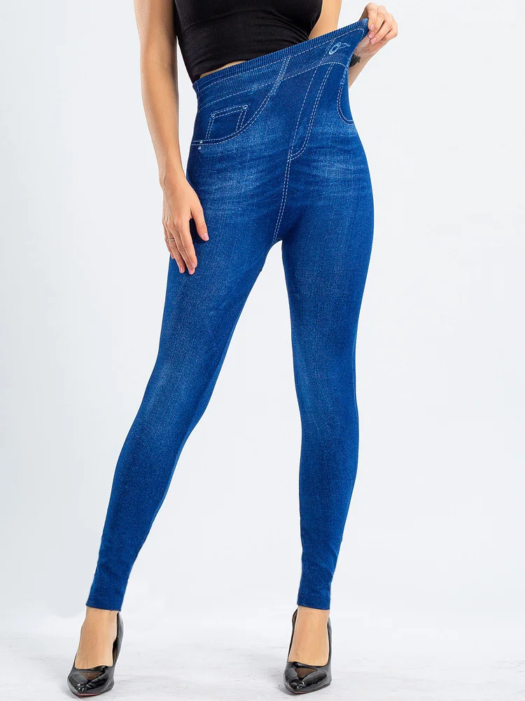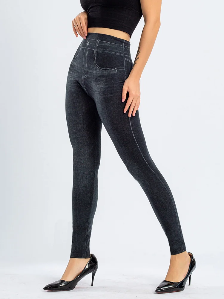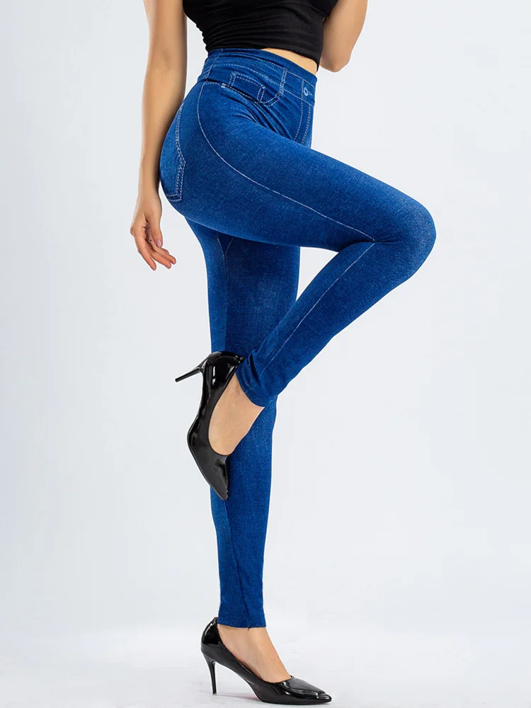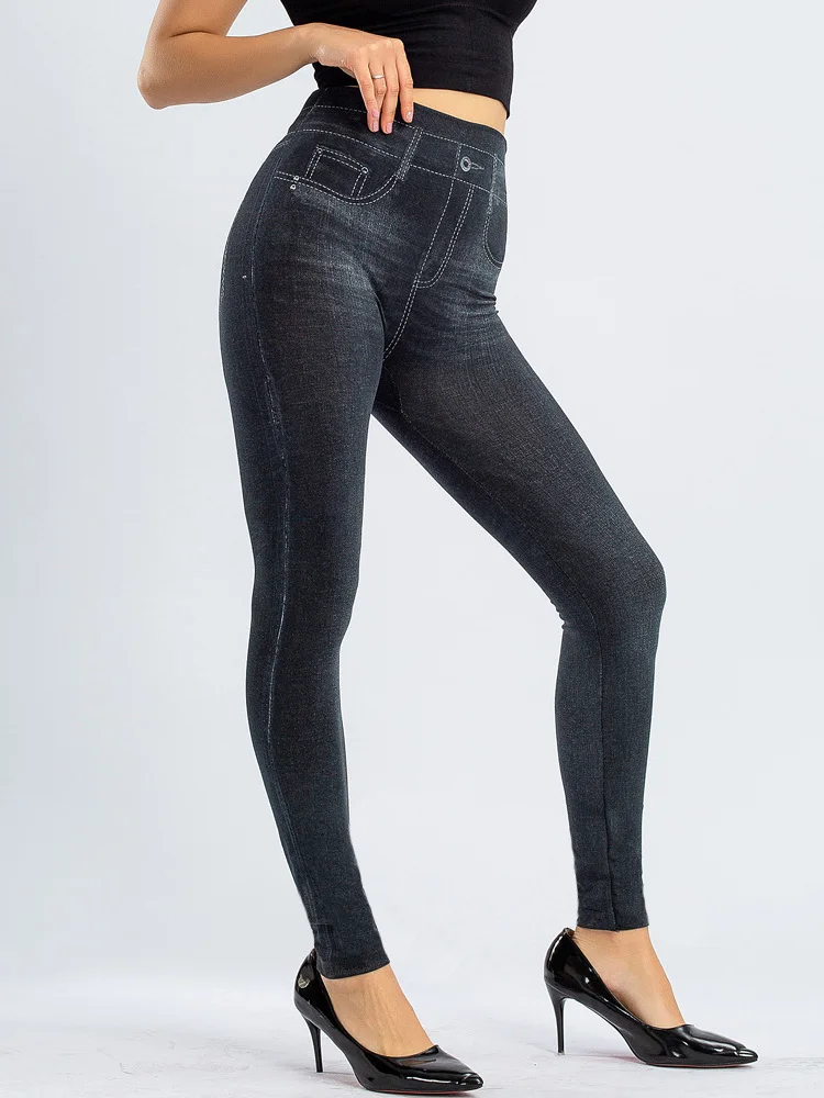 CUHAKCI спортивные сексуальные леггинсы для тренировок бега пуш-ап тонкие женские брюки из искусственного денима джинсы с высокой талией эластичные брюки для фитнеса