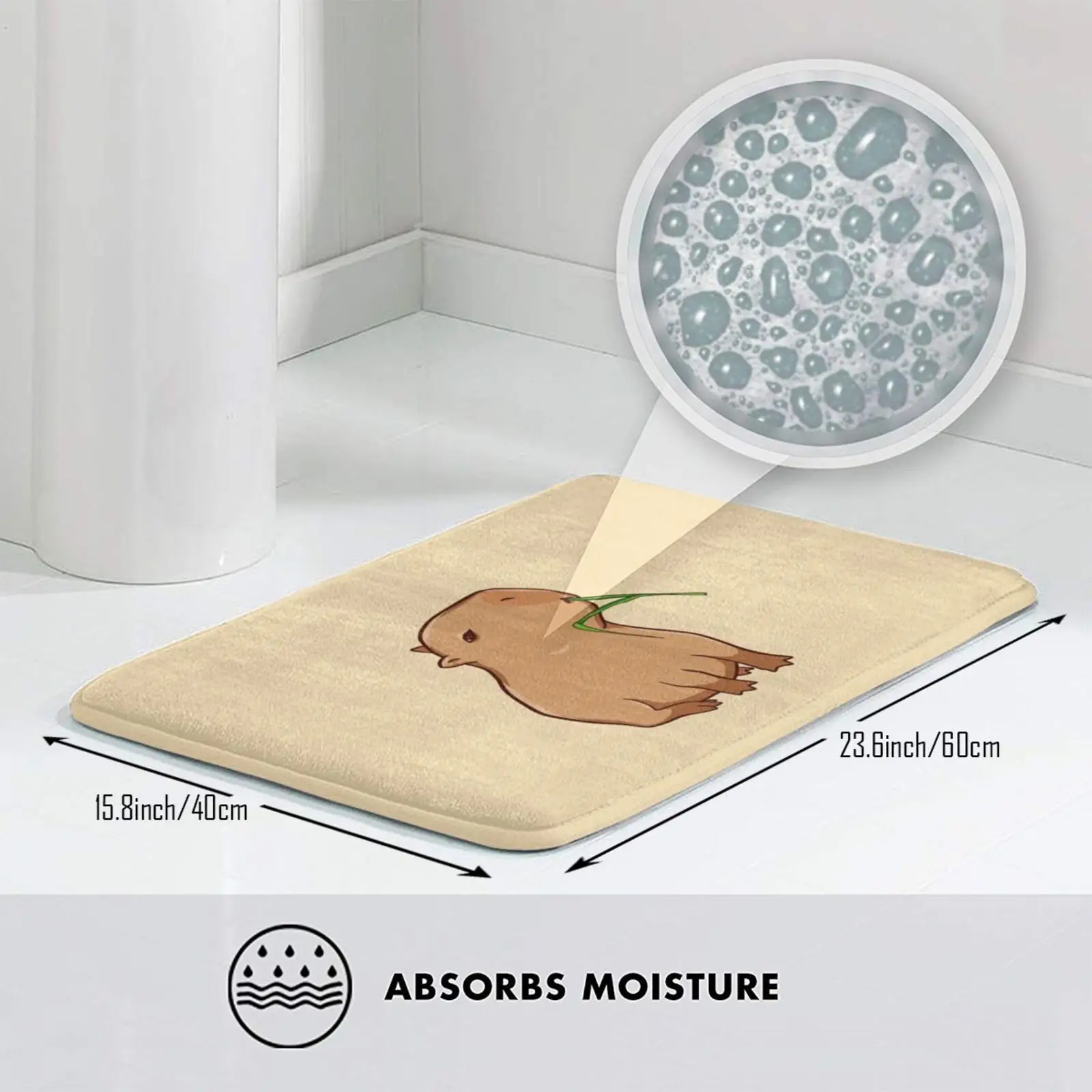 Капибара с листьями, еда зеленой! Коврик для входной двери, коврик для ванной, коврик, капибара, капибара, животные, грызуны, охлаждение, расслабление, милый