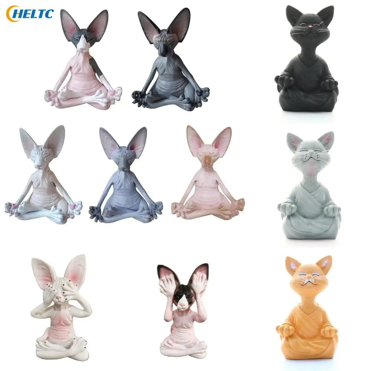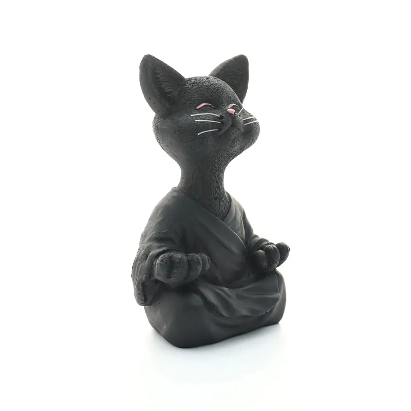 1 шт. причудливая черная статуэтка Будды Сфинкса кошки для медитации йоги Коллекционная счастливая кошка домашний сад искусственная скульптура