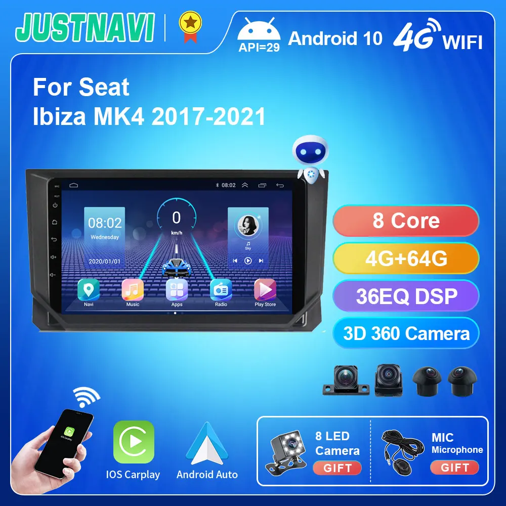 Автомагнитола 2 din для Seat Ibiza MK4, 10,0-2017, 4 + 64 ГБ, Android 2021