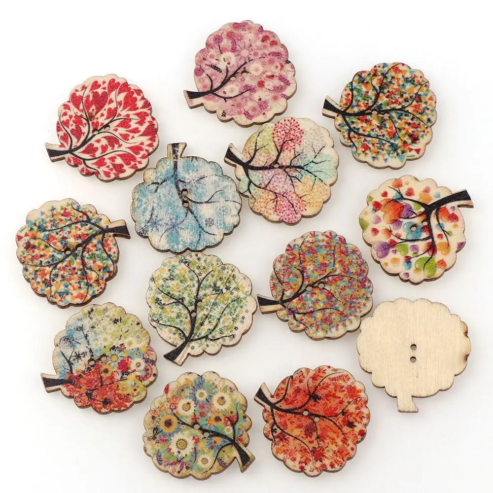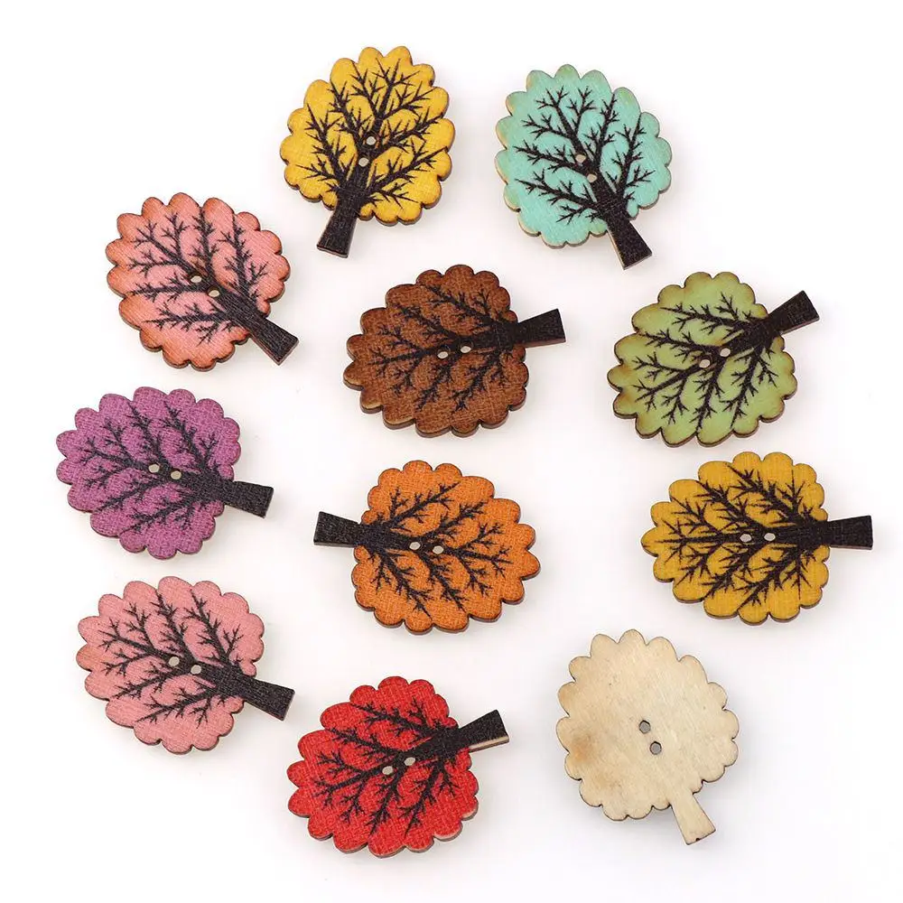 Набор для рисования листьев, 2 отверстия, деревянные пуговицы для ш...