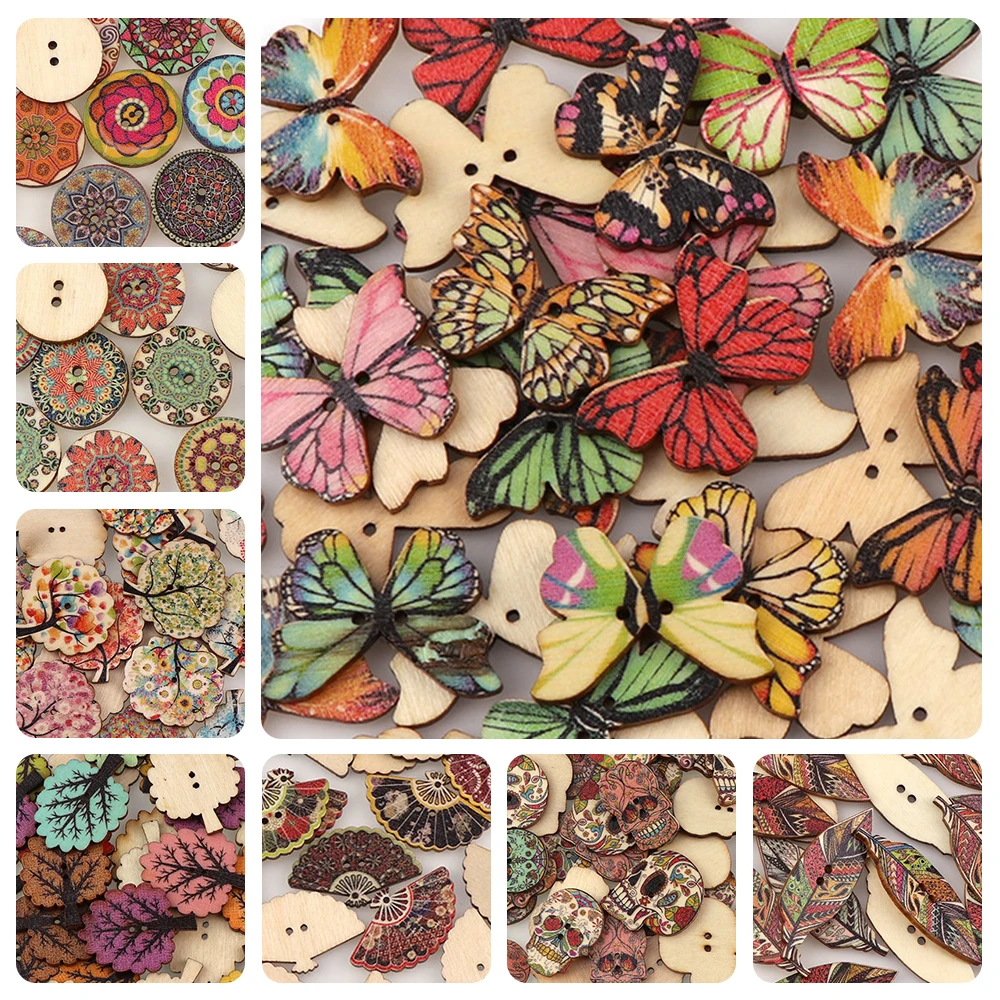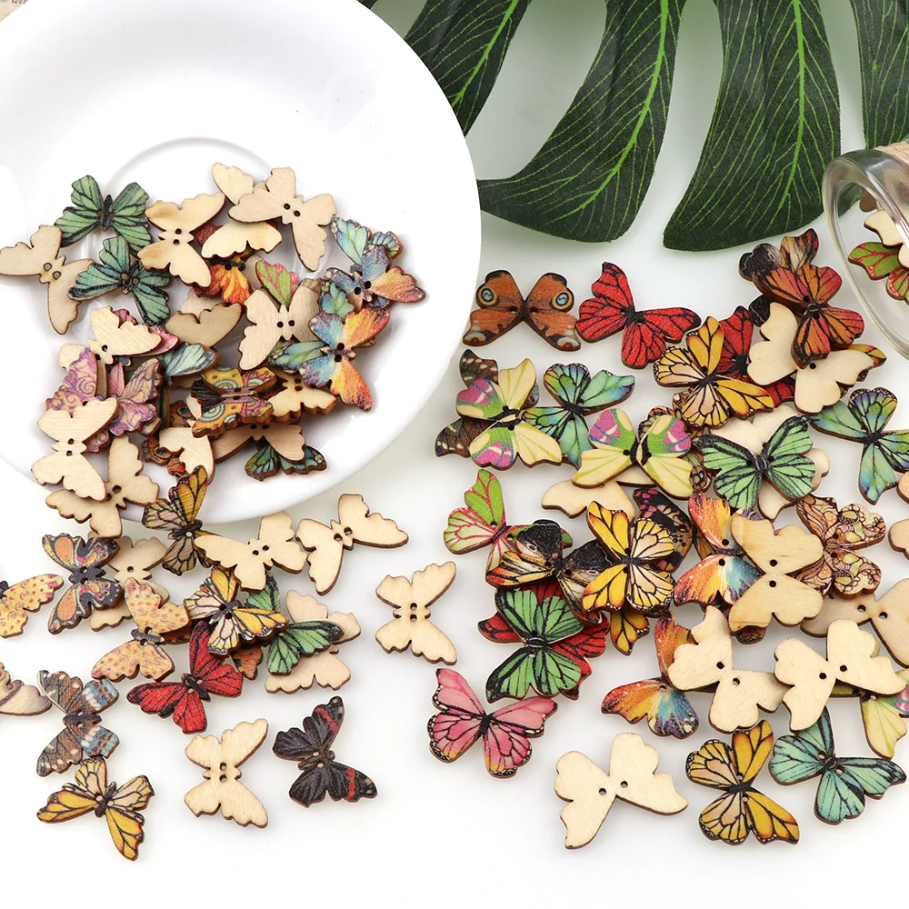 50 шт.компл. красочные деревянные пуговицы с бабочками подходят для...