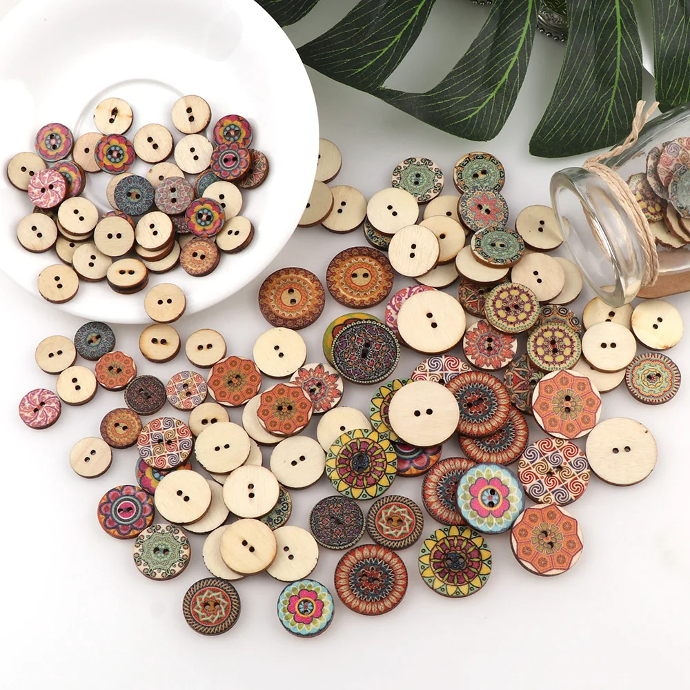 50 шт.лот серии винтажных картин деревянные пуговицы с 2 отверстиями для рукоделия скрапбукинга украшения одежды Швейные аксессуары