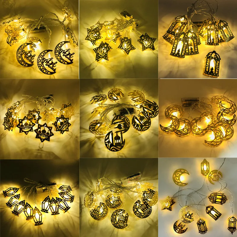 10 Огни Рамадана украшение Луна Звезда светодиодные гирлянды ИД Муб...