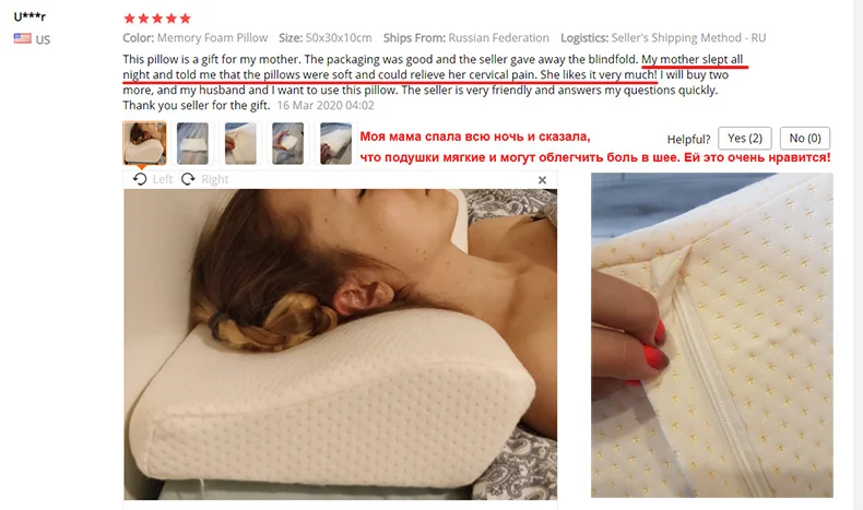 Страна: RU Color: Memory Foam Pillow Size: 50x30cm Ships From: Russian Federation Доставка: Цайняо доставка 26.01.2022
