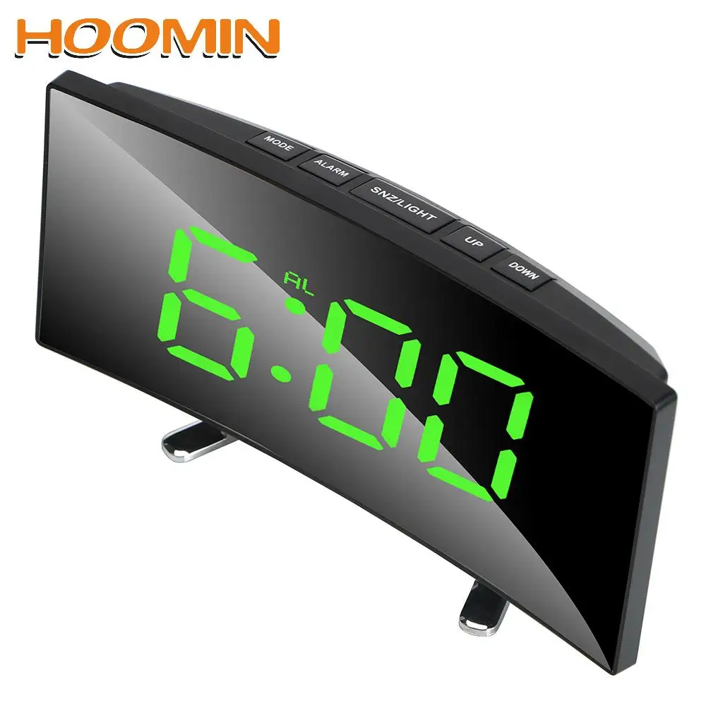 7-дюймовые настольные часы HOOMIN с большими цифрами для детской спальни, настольные часы со светодиодный ным экраном, цифровой будильник, изогнутые зеркальные часы с регулируемой яркостью