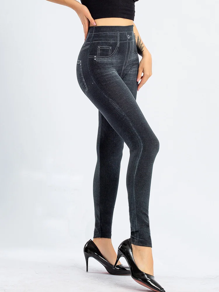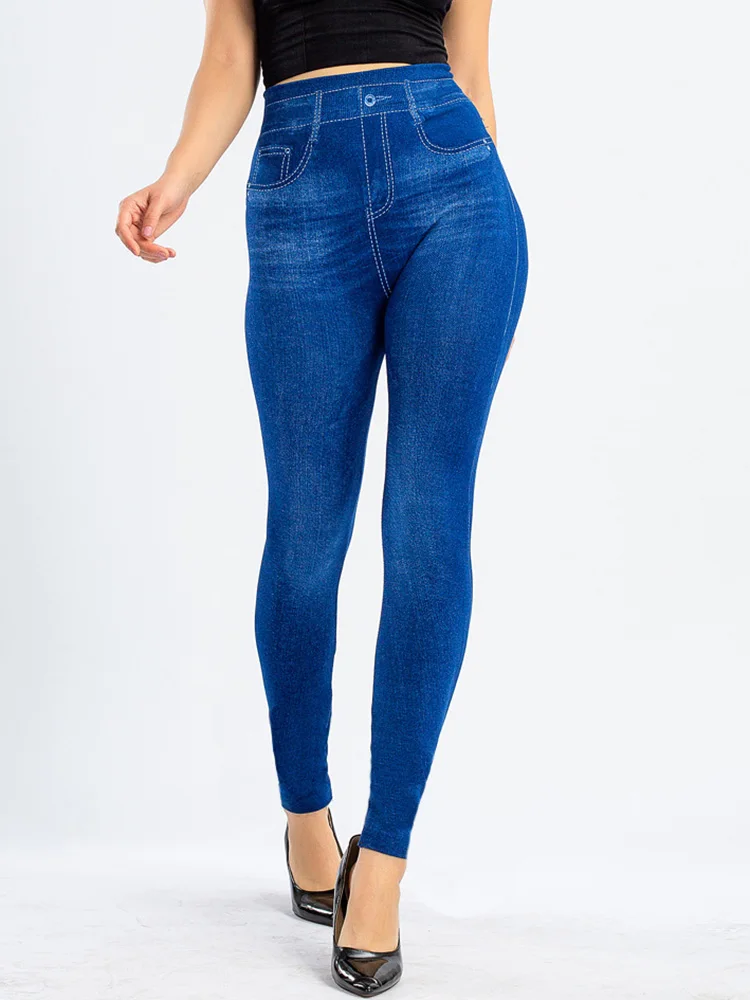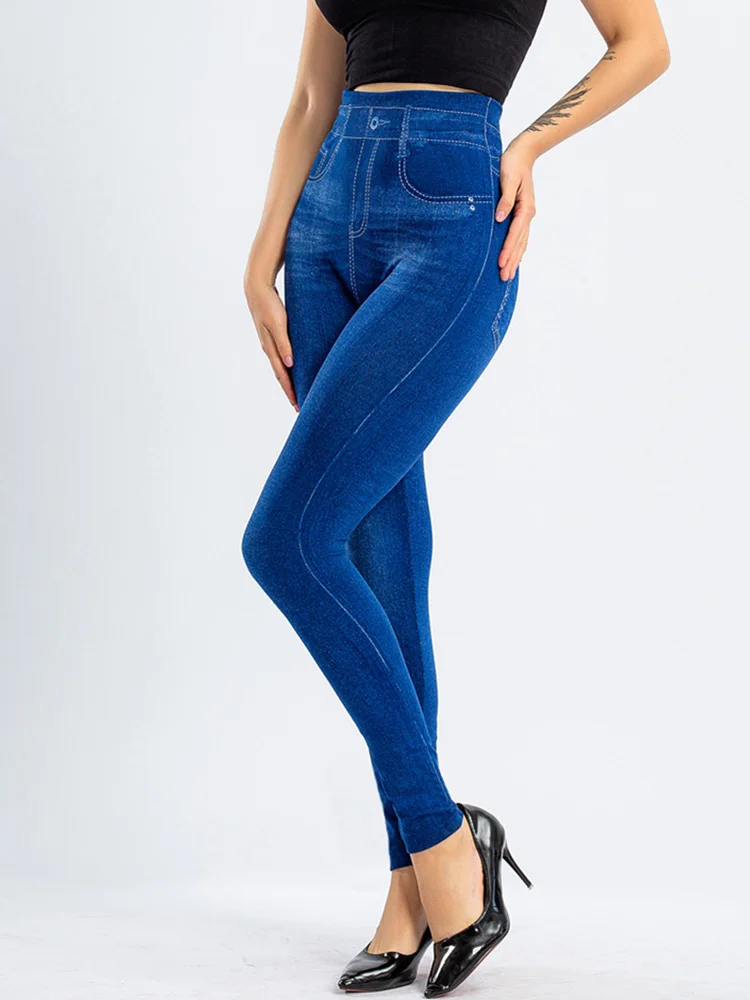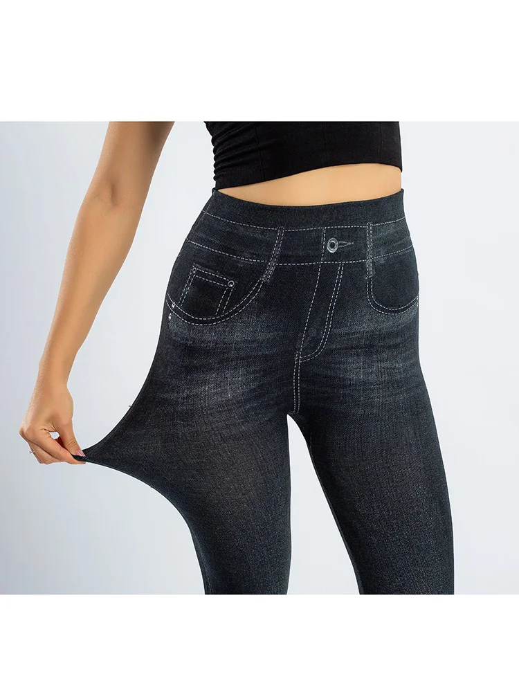 Женские джинсовые леггинсы INDJXND с завышенной талией из искусственного денима, женские сексуальные эластичные штаны для фитнеса, спортзала, тренировок, пуш-ап