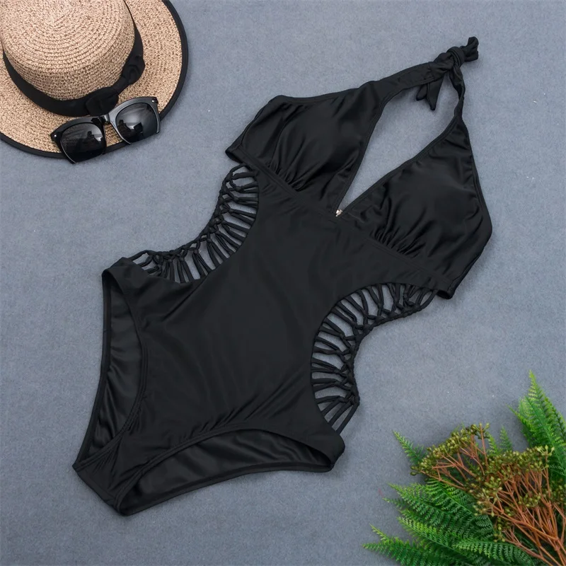 Купальник-Монокини пуш-ап, бандажный купальный костюм, халтер, пика...