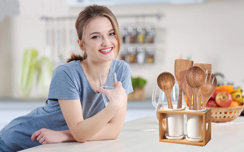 Набор деревянной кухонной утвари, Набор Кухонной Утвари Из Натурального Тикового Дерева, набор кухонной утвари с антипригарным покрытием