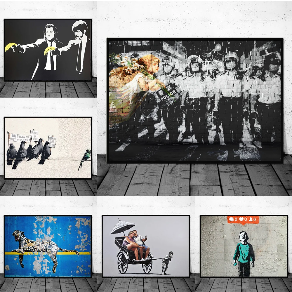Бэнкси серии картин на холсте Настенная роспись для гостиной плакат и принты современный город улица искусство HD Картины домашний декор