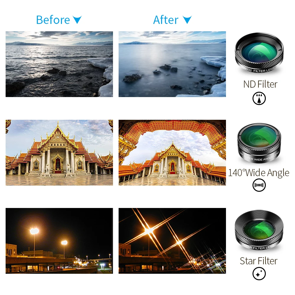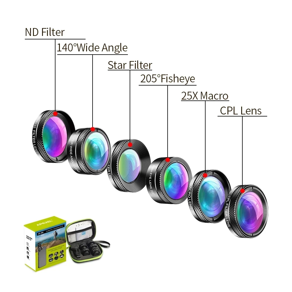 Набор объективов APEXEL 11 в 1 для камеры телефона, широкоугольный макрообъектив рыбий глаз, CPL ND-фильтр, калейдоскоп и телескопический объектив для смартфона