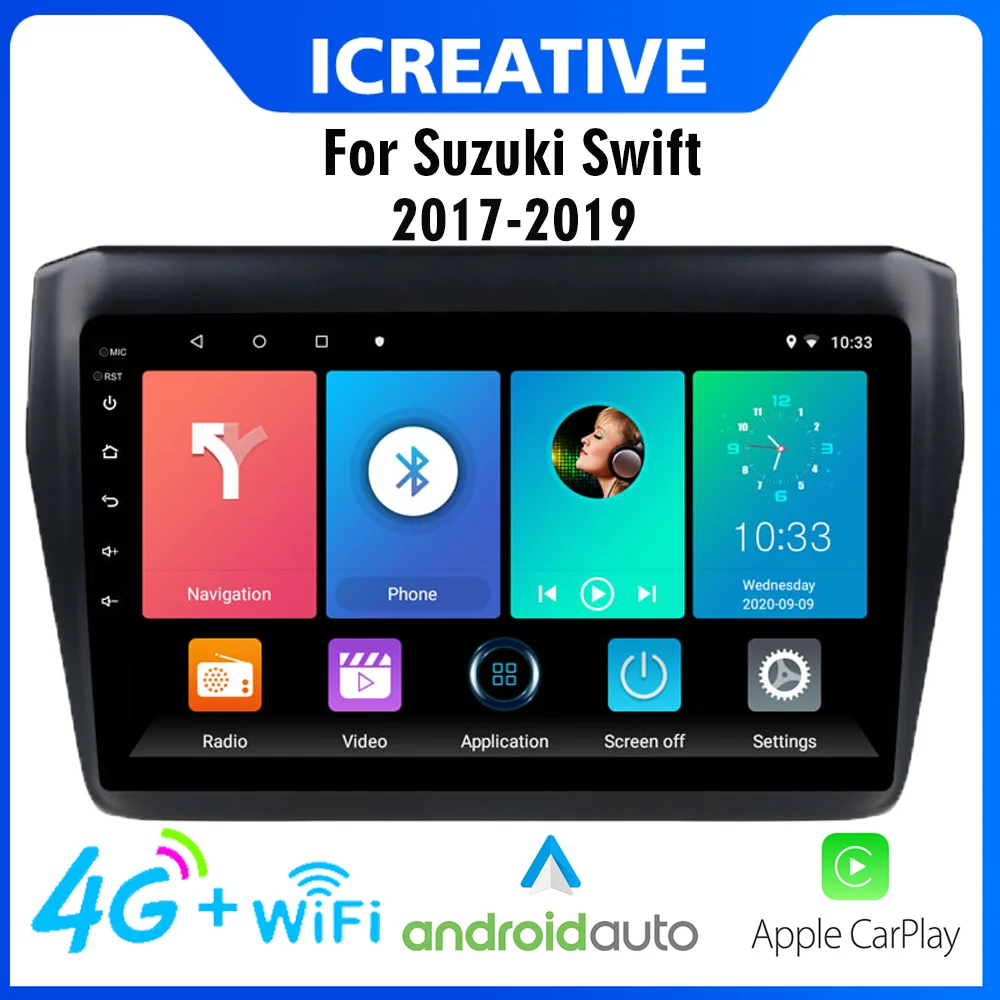 Автомагнитола Магнитола 2 Din 4G Carplay Android автомобильный мультимедийный плеер 9 дюймов для Suzuki Swift 2017 2018 2019 автомобильное радио GPS Навигация BT WIF Iauto 4G GPS трекер навигатор 2 дин андройд Аудио