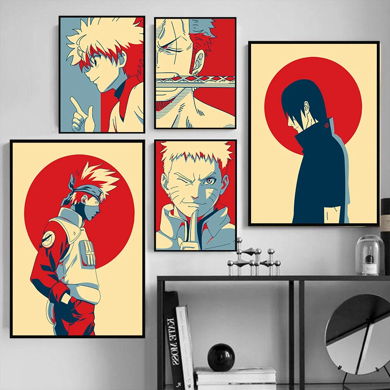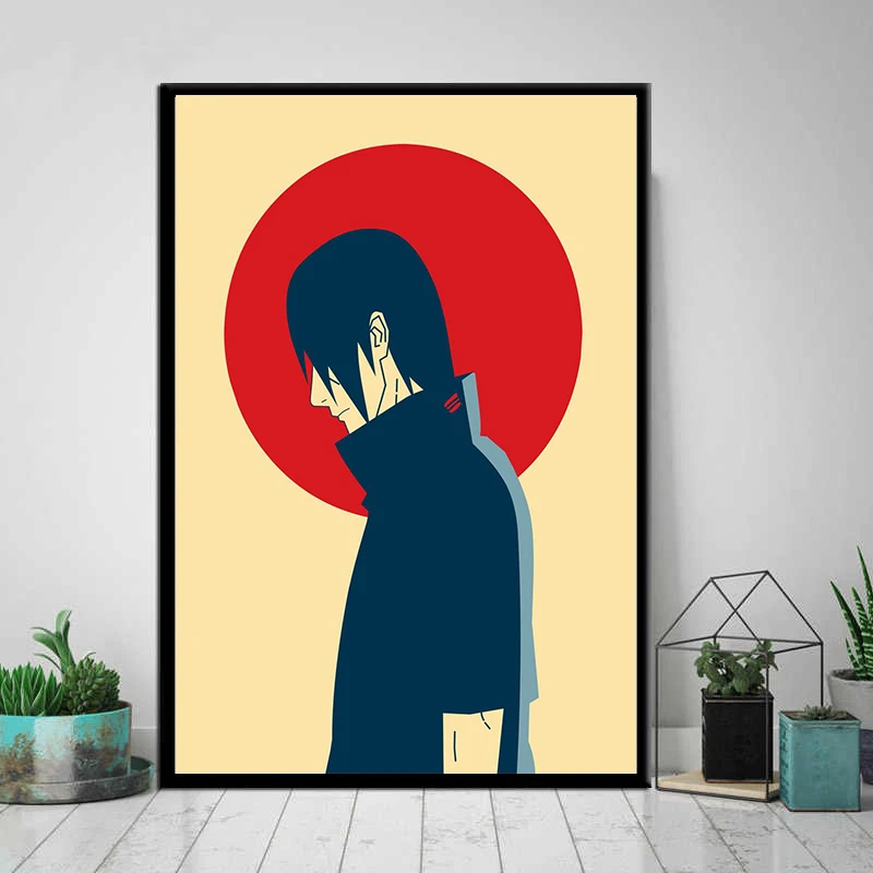 Постер из японского аниме Наруто в стиле ретро, винтажная настенная Картина на холсте с изображением Саске Итачи, скандинавский декор, украшение для гостиной