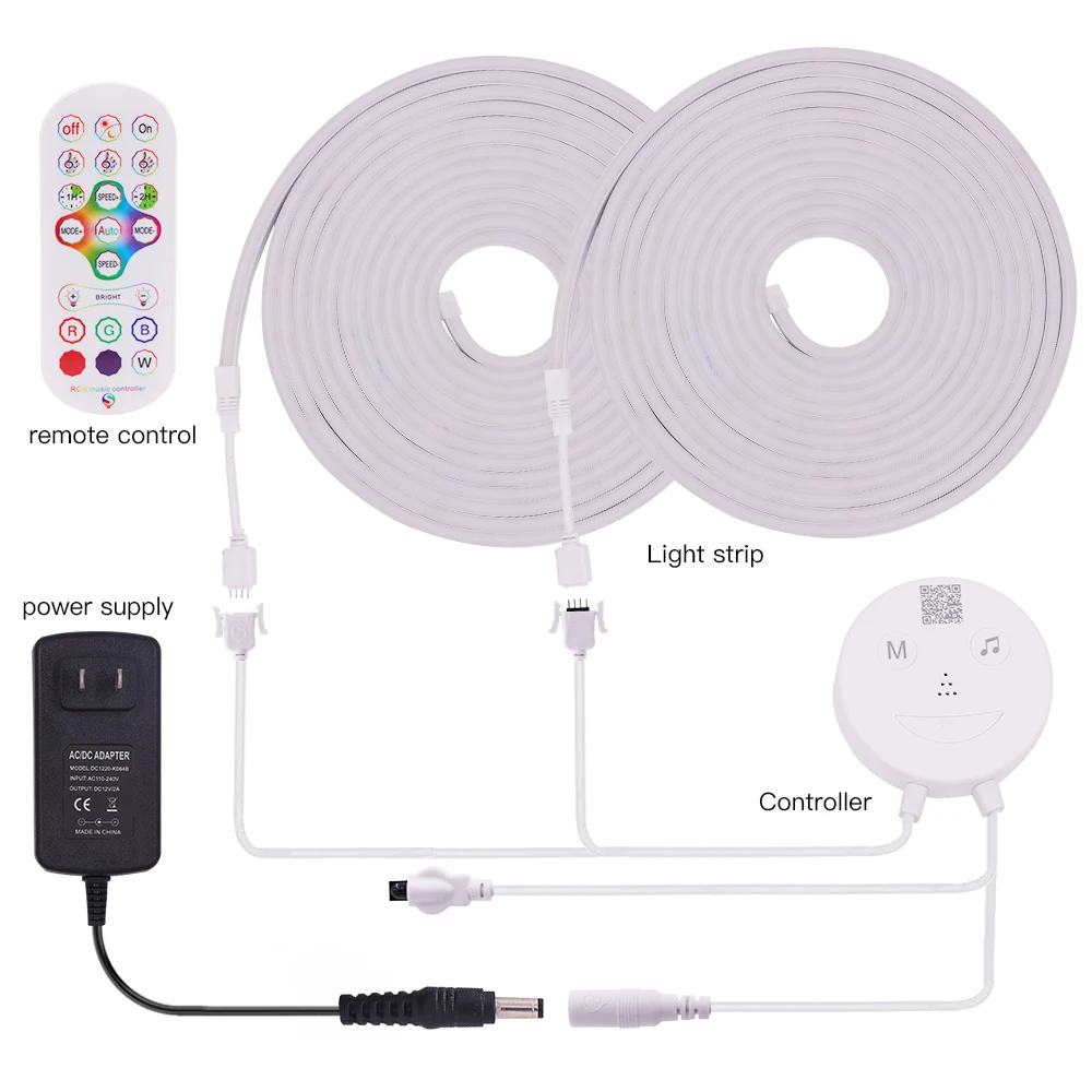 Tuya Smart DC 12V светодиодный неоновый светильник RGB Bluetooth силиконовый гибкий ленточный светильник с пультом дистанционного управления и музыкальным приложением Водонепроницаемая неоновая веревка