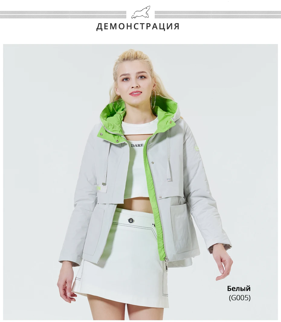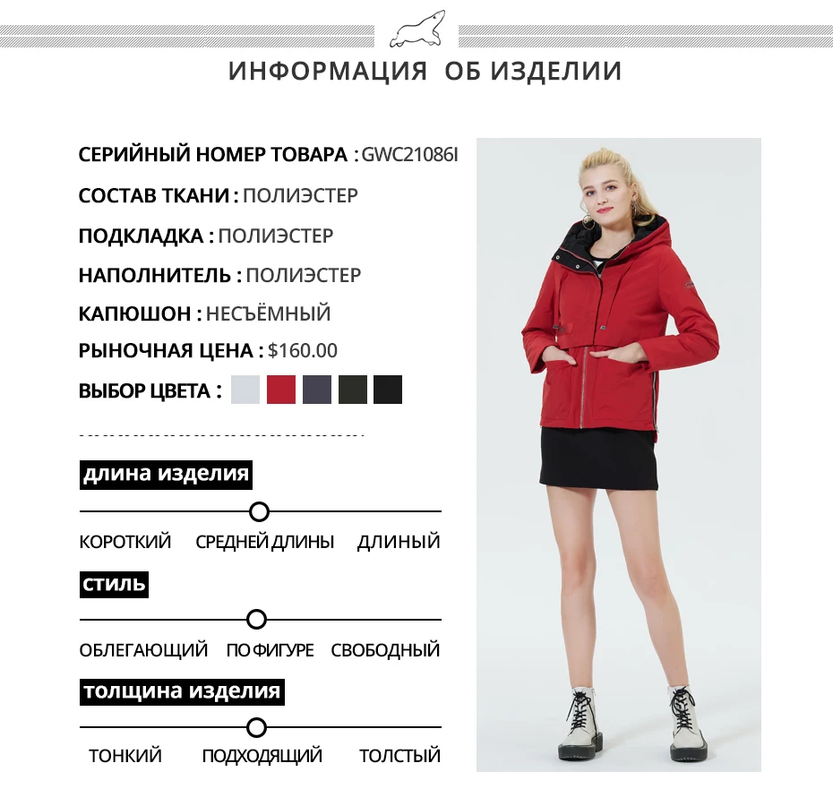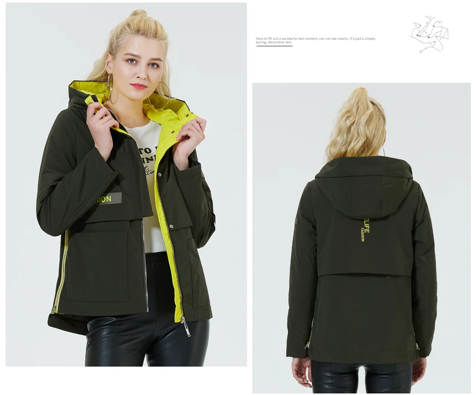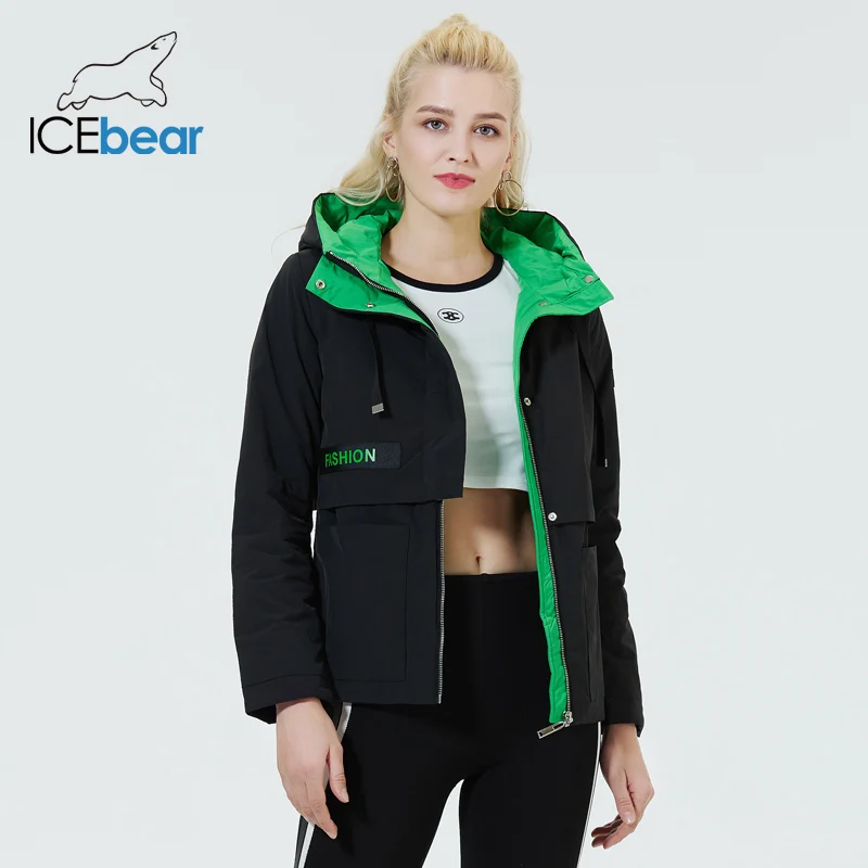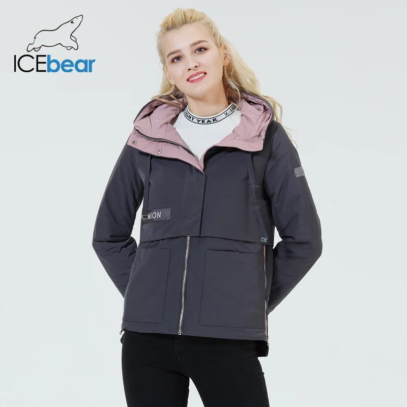 ICEbear Весна 2022 Короткая женская куртка с капюшоном Высококачественное ветрозащитное пальто с капюшоном Модная женская хлопковая одежда GWC21086I