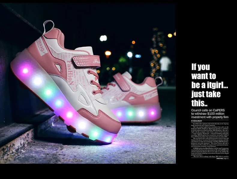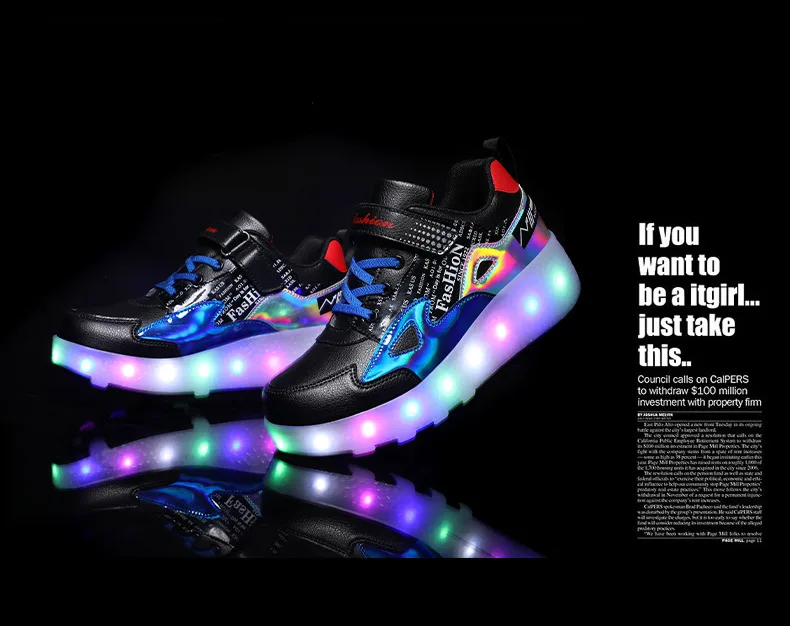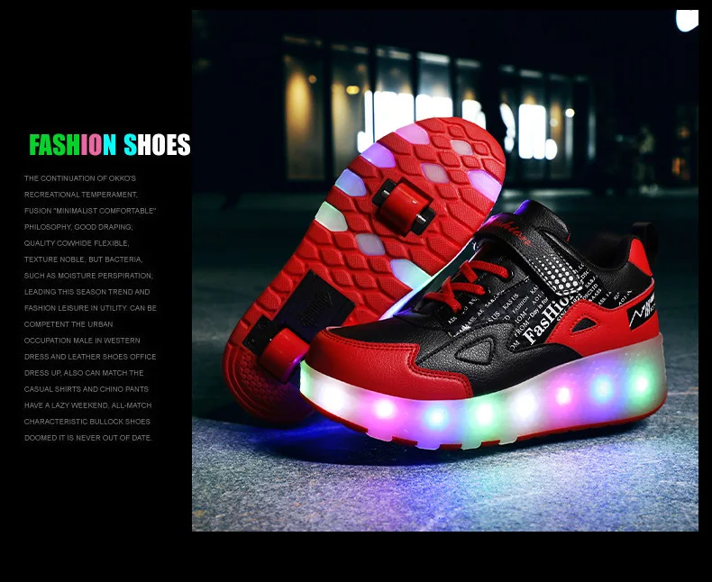 Детские светящиеся кроссовки на двух колесах, светильник обувь для роликовых коньков, зарядка через USB, черные красные розовые