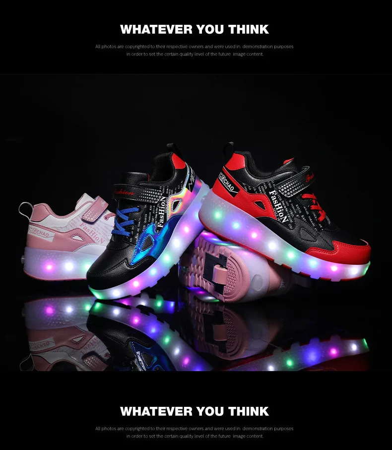 Детские светящиеся кроссовки с двумя колесами; Светодиодный светильник; Обувь для катания на роликах; Детская обувь с подсветкой для мальчиков и девочек; Зарядка через USB; Цвет черный, красный, розовый